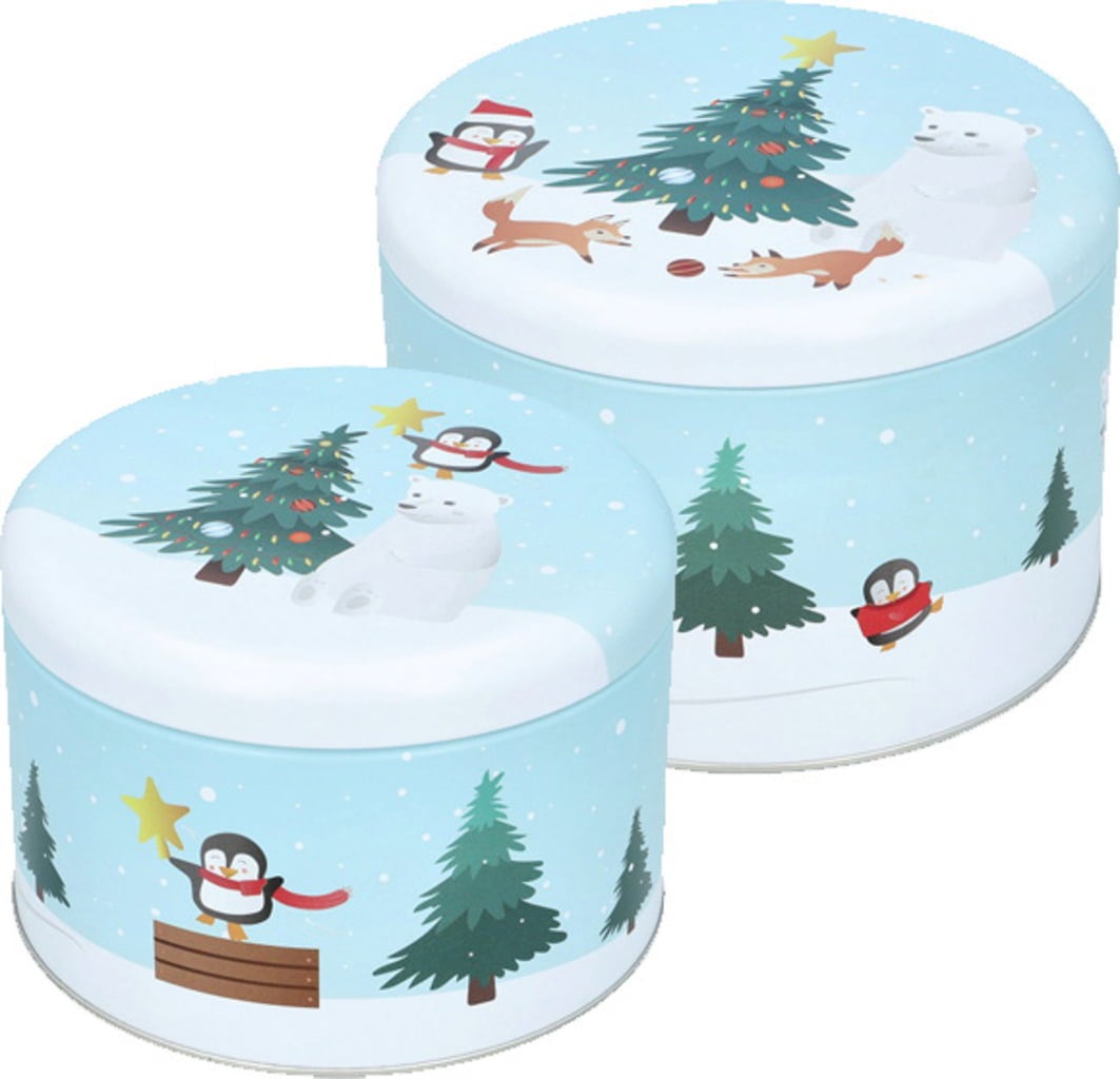 Birkmann Cookie Tin Set - Animals Decorating a Tree, large & round