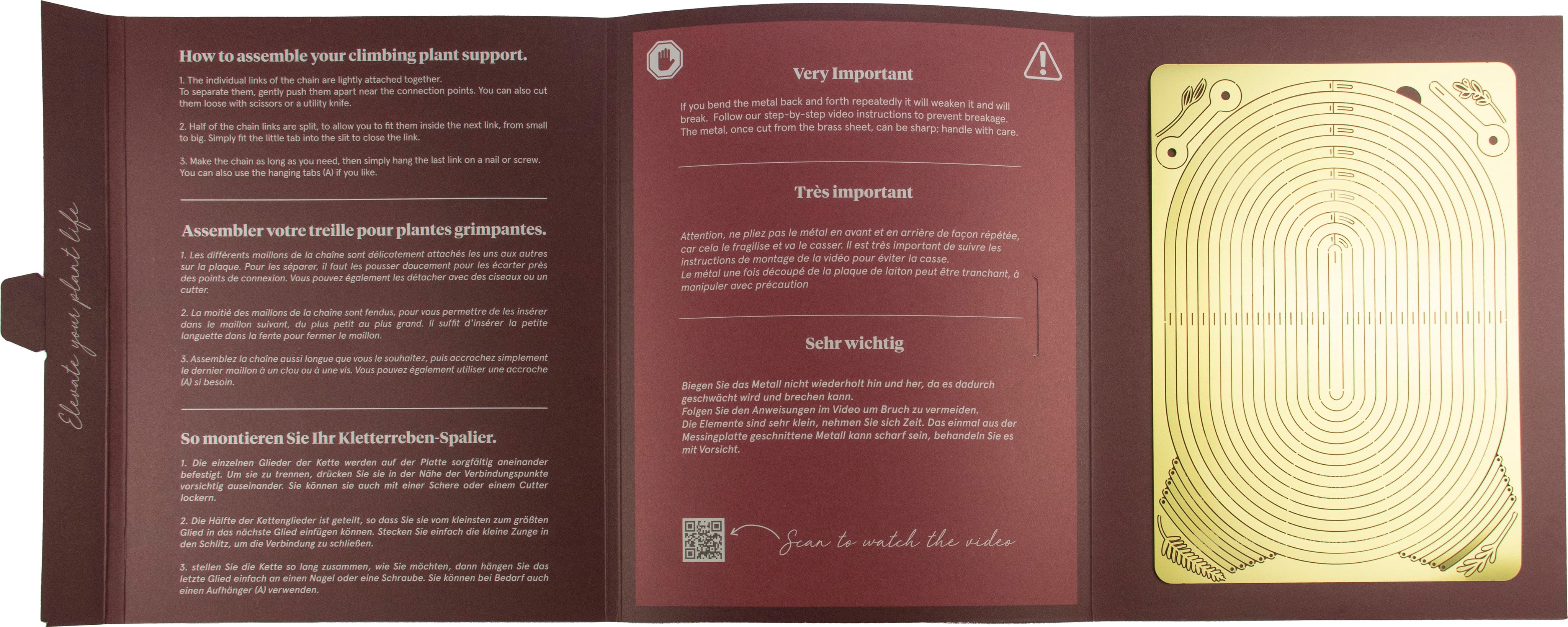 This elegant climbing aid for plants such as ivy, clematis, jasmine or grapevines is uniquely stylish. With its minimalist design, it blends perfectly into modern rooms and also makes outdoor areas chic. The brass, coated with a protective layer, develops an attractive stainless steel rust over time, but can easily be polished to a high gloss again.