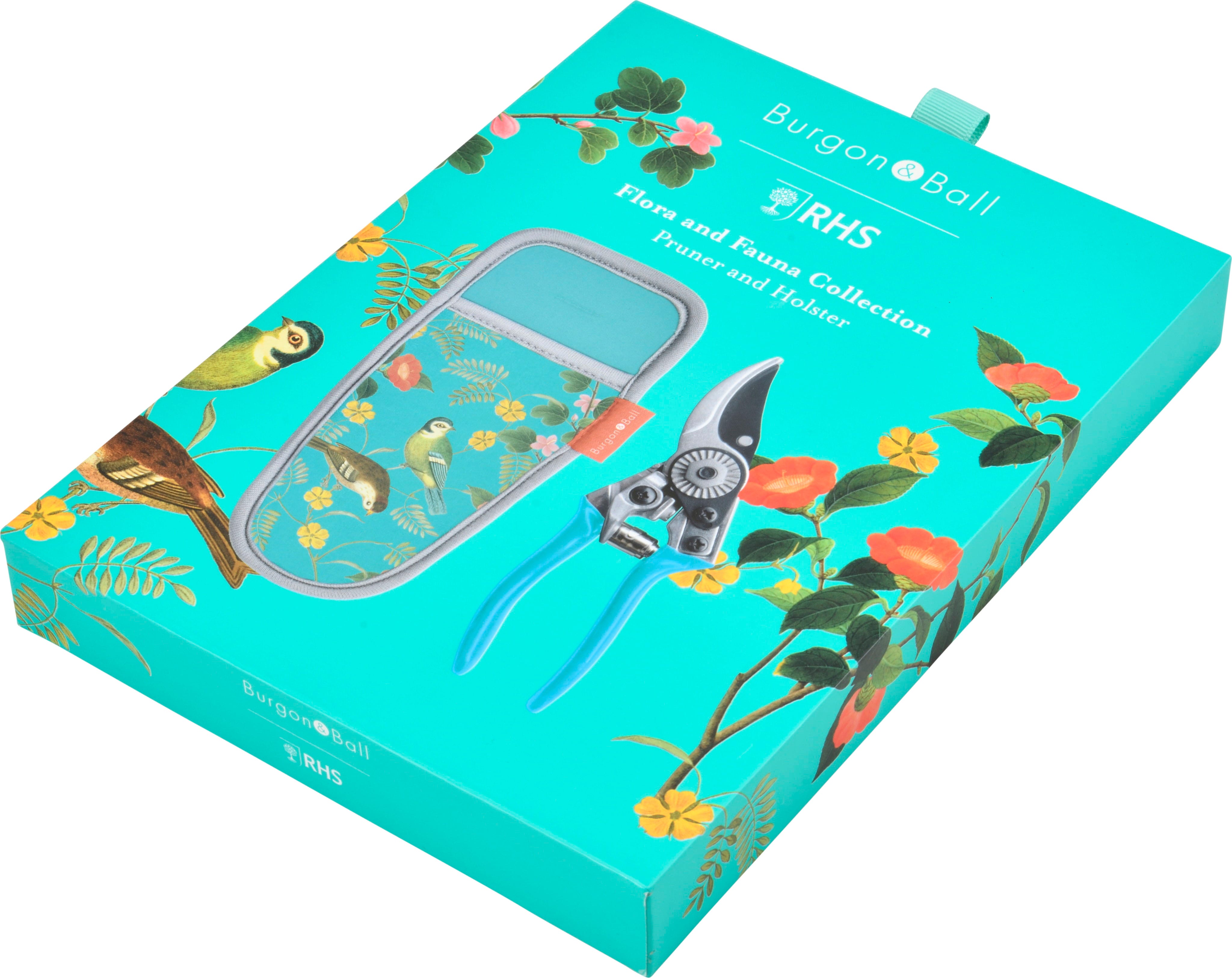 To ensure your tools are always close at hand, the set includes a matching neoprene holster adorned with the enchanting "Flora & Fauna" motifs from the historic RHS archives. The holster attaches comfortably to your belt, protecting the pruner while you move freely through your garden.