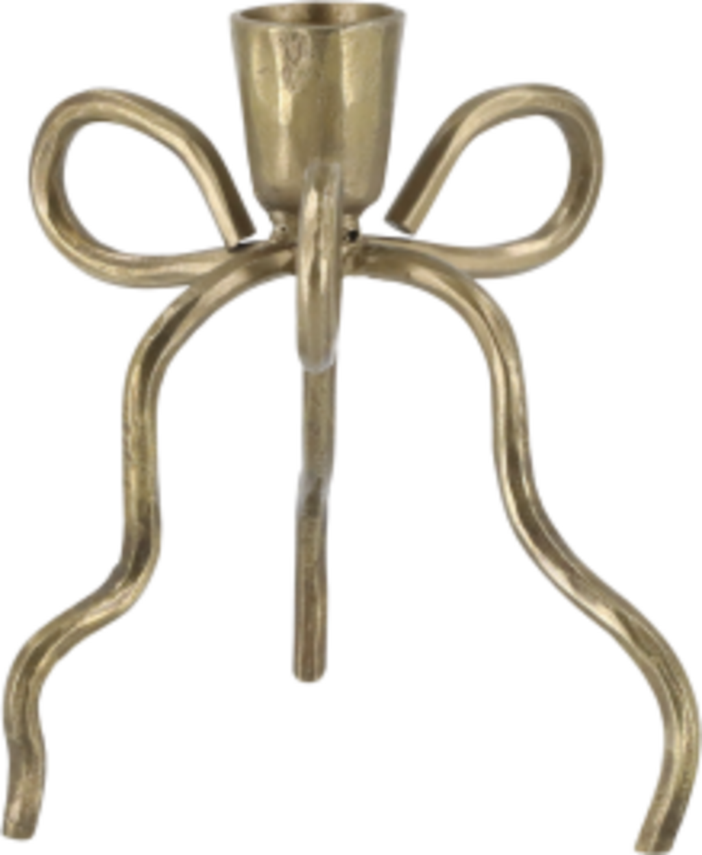 This iron candle holder with an antique brass look features a charming design resembling a bow. A stylish and decorative accessory that creates a warm, festive ambience in your home both when placed solo and in combination with other sizes.