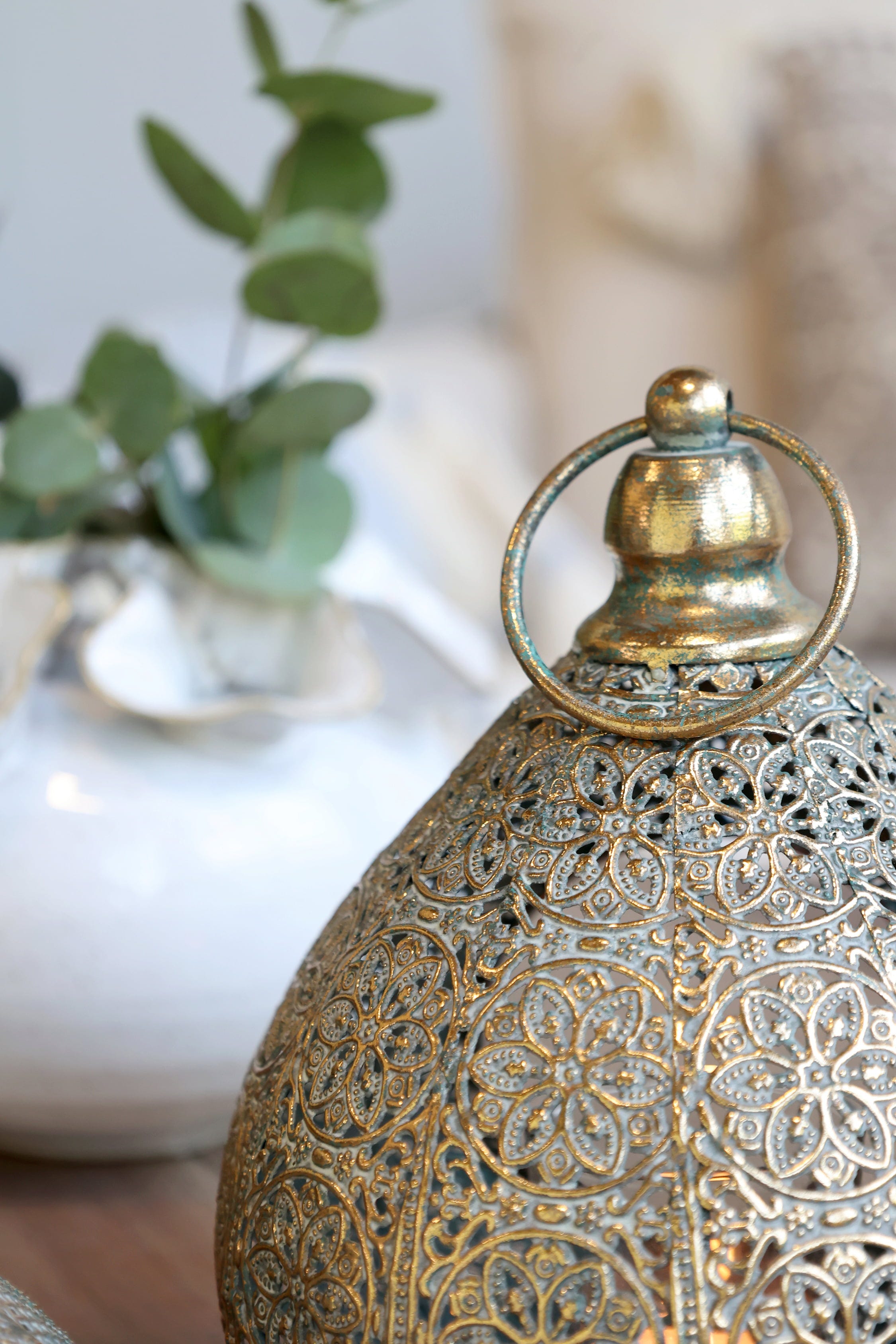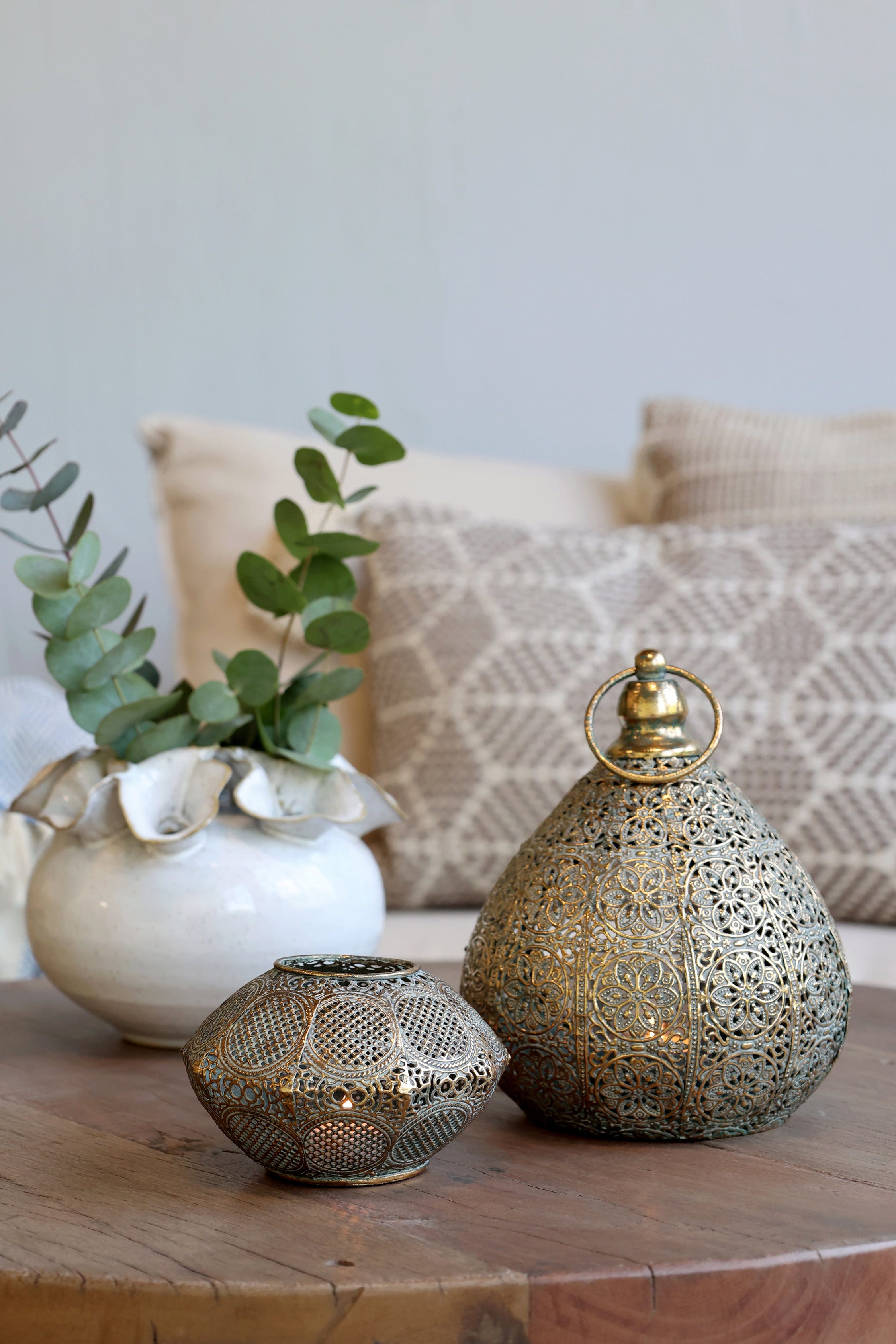 This elegant lantern, with its delicate filigree pattern, creates a beautiful play of atmospheric light in any room or on the terrace. Perfectly suited for setting the scene for cosy evenings or special occasions.