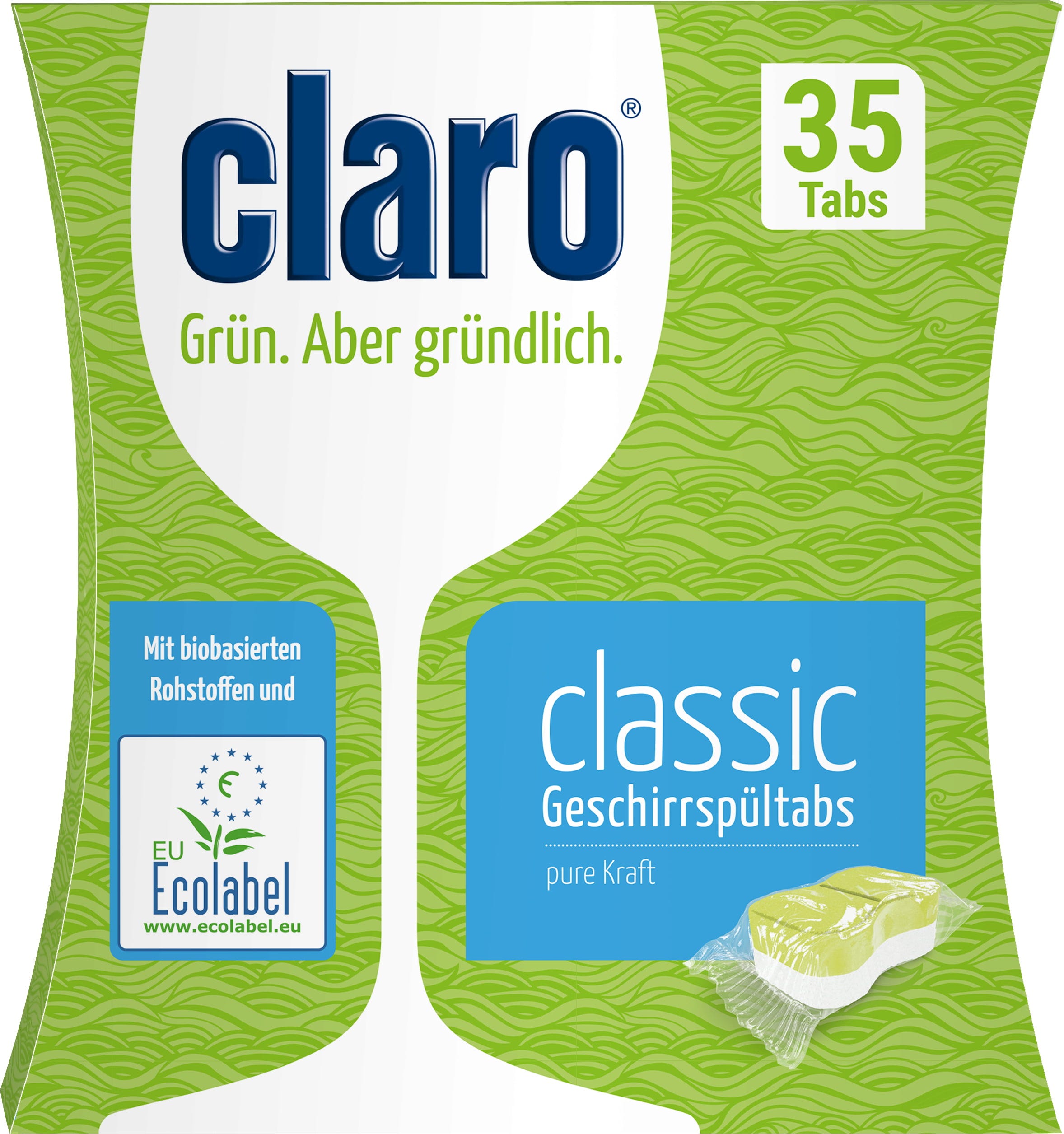 The Classic Tabs from claro are a reliable remedy for dirty dishes and effortlessly remove even stubborn, dried-on food residue. They are individually packed in water-soluble foil and gradually unfold their effect during the wash cycle. The tabs are very powerful against dirt, but are also gentle on the dishes. The low-temperature activator enables radiant results even at low temperatures.