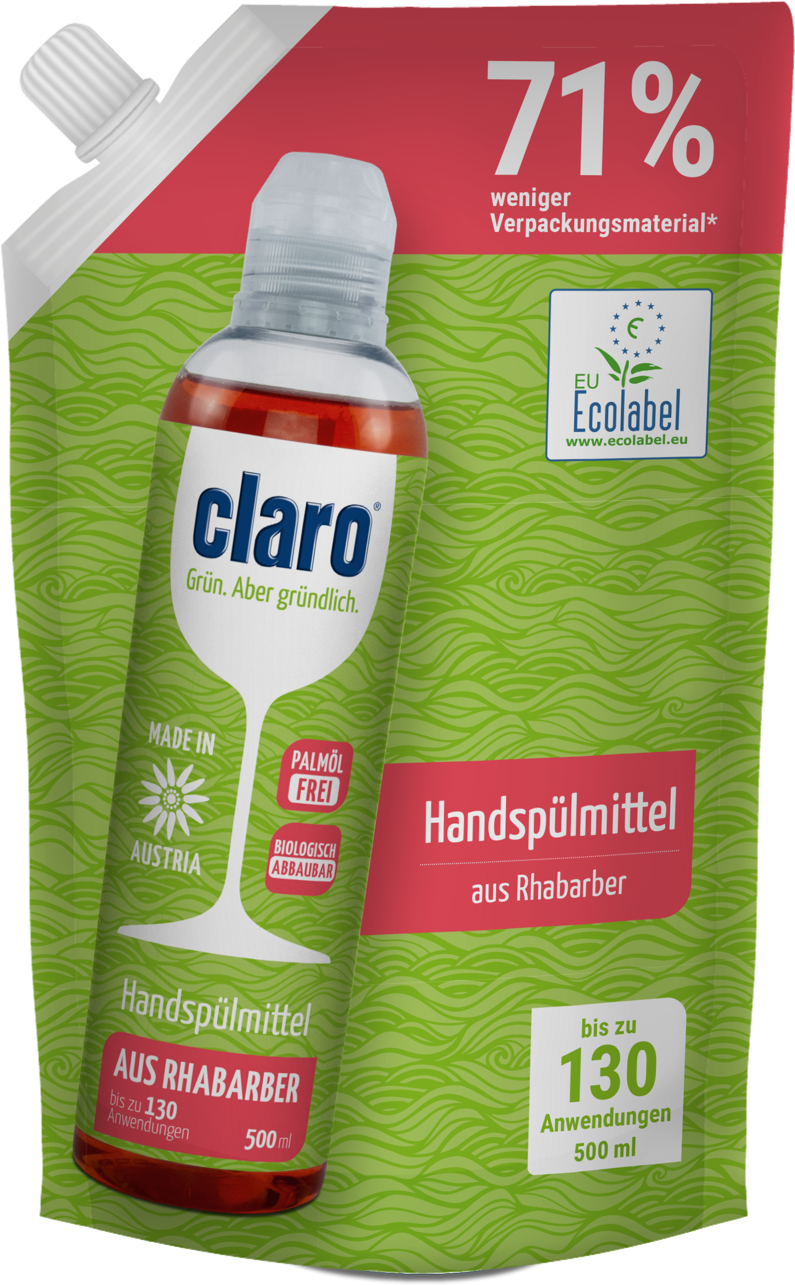 This washing up liquid by claro exudes a pleasant rhubarb scent and, thanks to its high level of efficiency, effortlessly removes heavy soiling and encrustations. The ingredients are vegan and biodegradable, while the packaging is made from 100% recycled PET. Since it contains no allergenic preservatives, the detergent is not only gentle on the environment, but also on your skin.