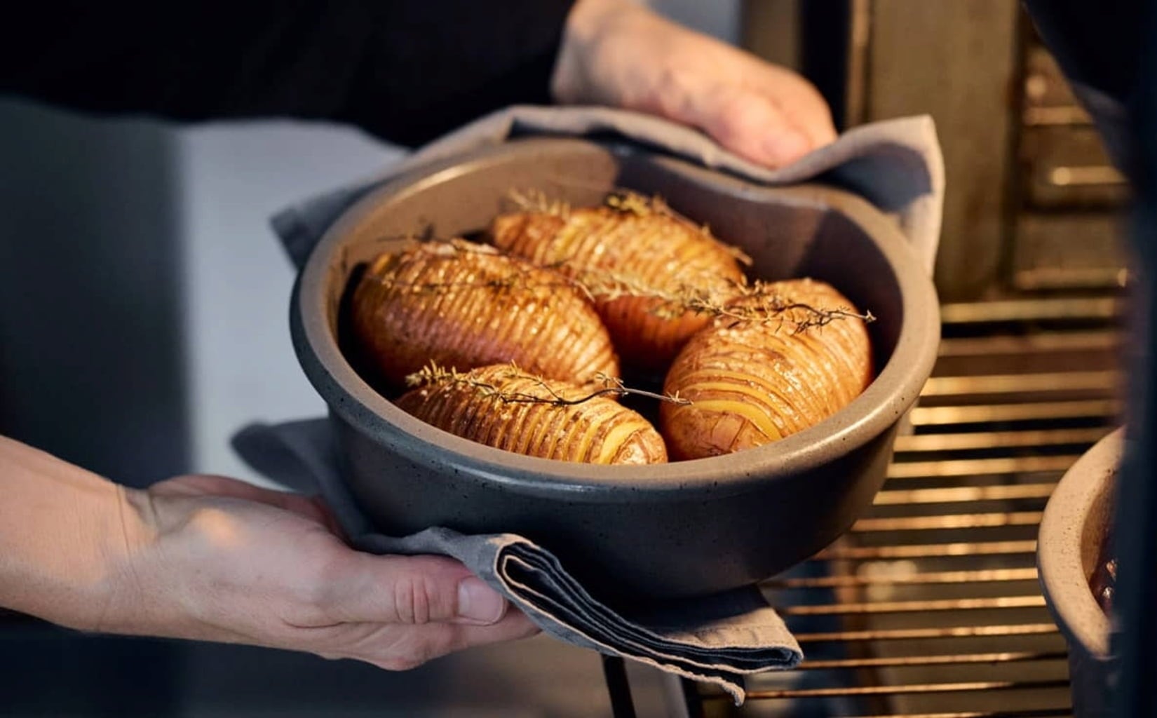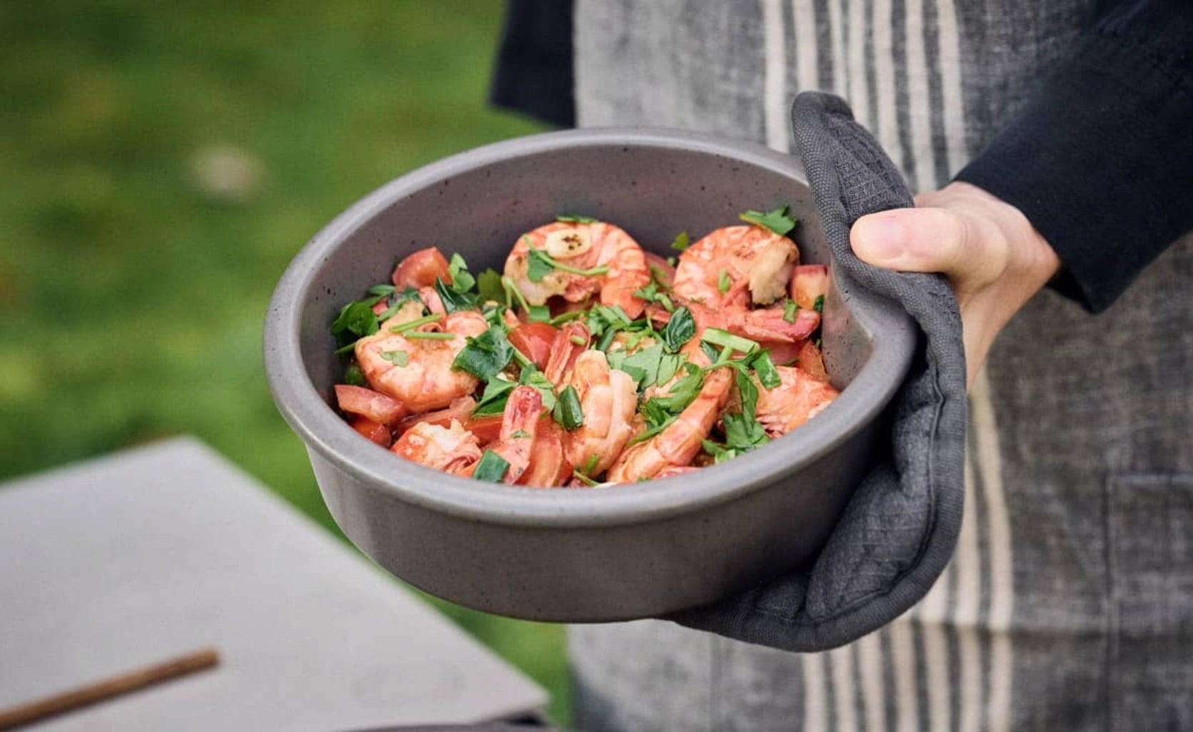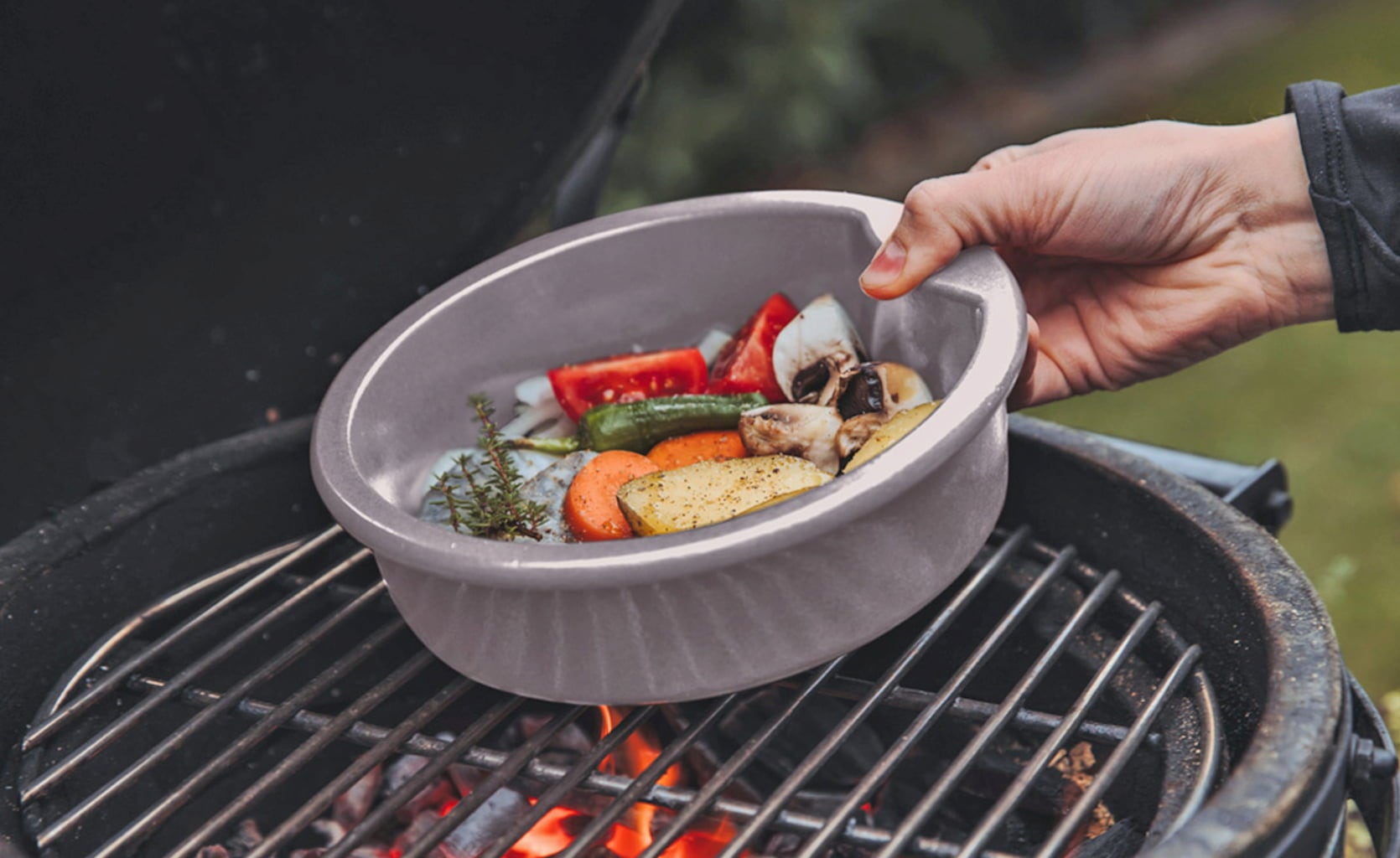 This innovative, fireproof cookware for the grill & oven is also very attractive as a serving bowl on the table. The Celtic Cauldron can be placed directly over an open flame and does not need to be watered beforehand. It only takes a few minutes for the ceramic pot to heat up. Thanks to its special glaze, you can roast without added fat - for health-conscious cooking and intense roasted flavours.