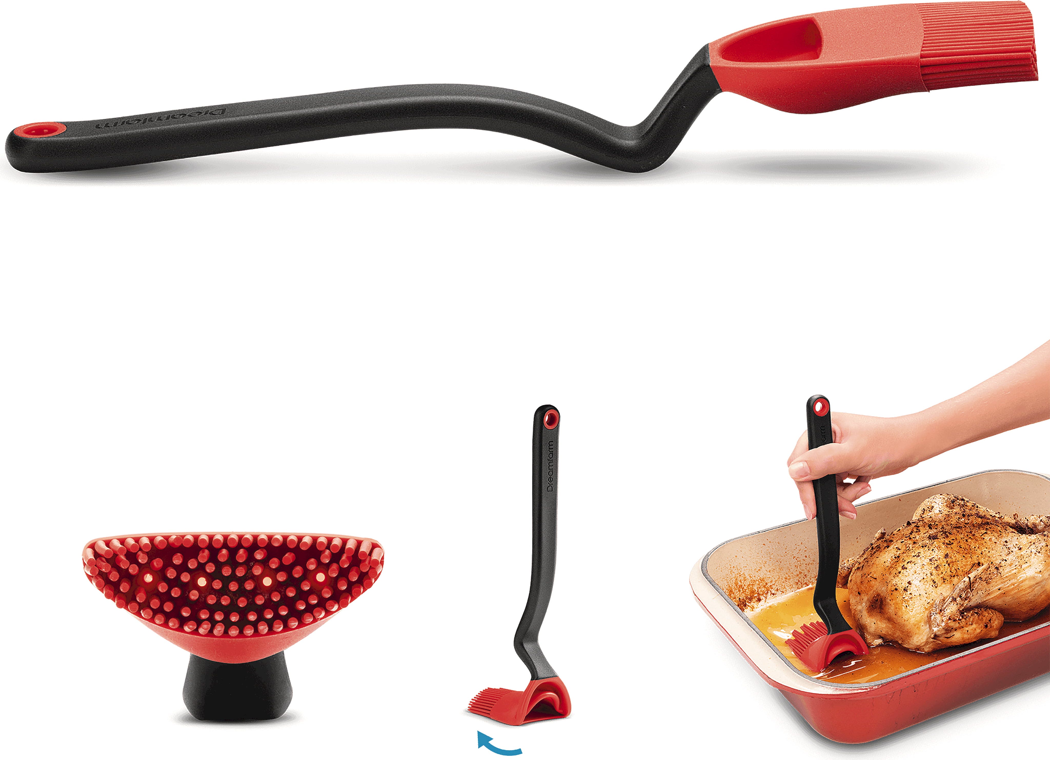 The Brizzle Brush by Dreamfarm is an incredibly flexible silicone tool that goes far beyond standard basting/pastry brushes. Thanks to its unique scooped head, it effortlessly gathers sauce or juices from pans and trays, bending elegantly to distribute liquids exactly where you want them.