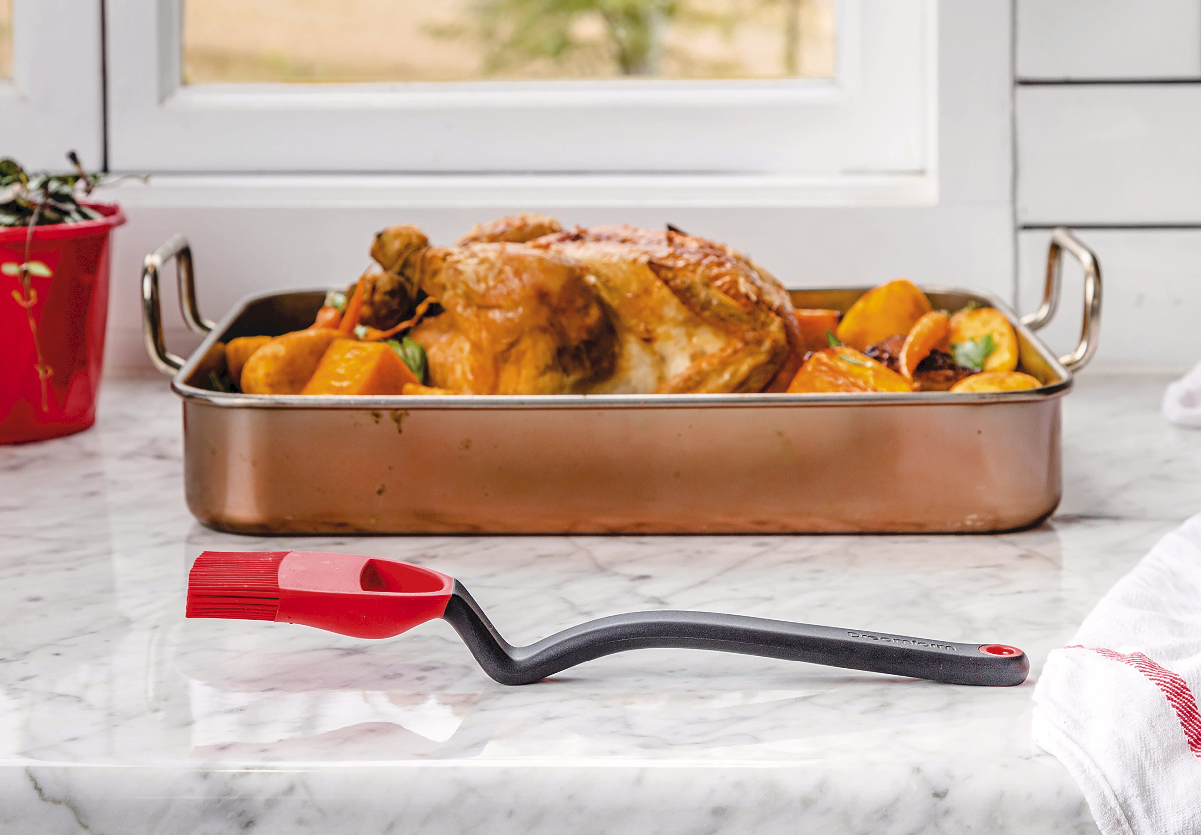 Inside the brush head, four holes control the even release of liquids, while 100 extra-fine silicone bristles ensure a smooth, clean finish. The brush is heat-resistant up to 260°C and doesn't trap germs as it can be popped straight into the dishwasher for easy cleaning after use.
