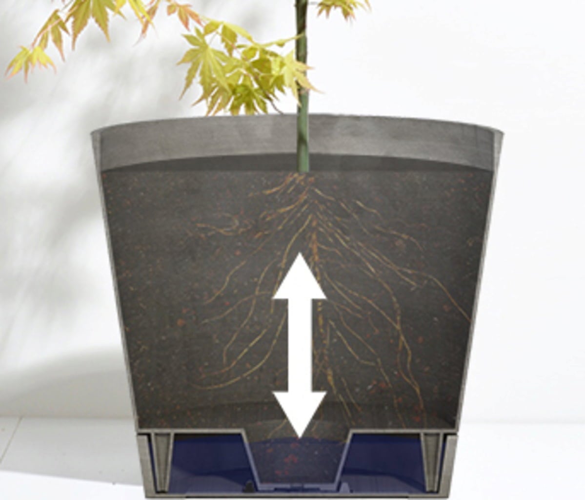 The Venice 2 planter combines timeless design with unique functionality. It is made from recycled plastic and features a built-in water reservoir that keeps your plant optimally supplied with water. Suitable for indoor and outdoor use.