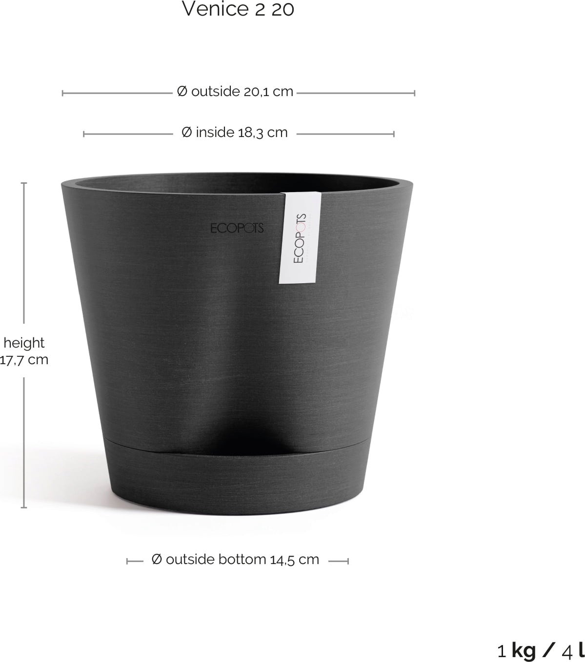 Ecopots Venice 2 Planter - Dark Grey, Ø 20 cm, Height 17.5 cm