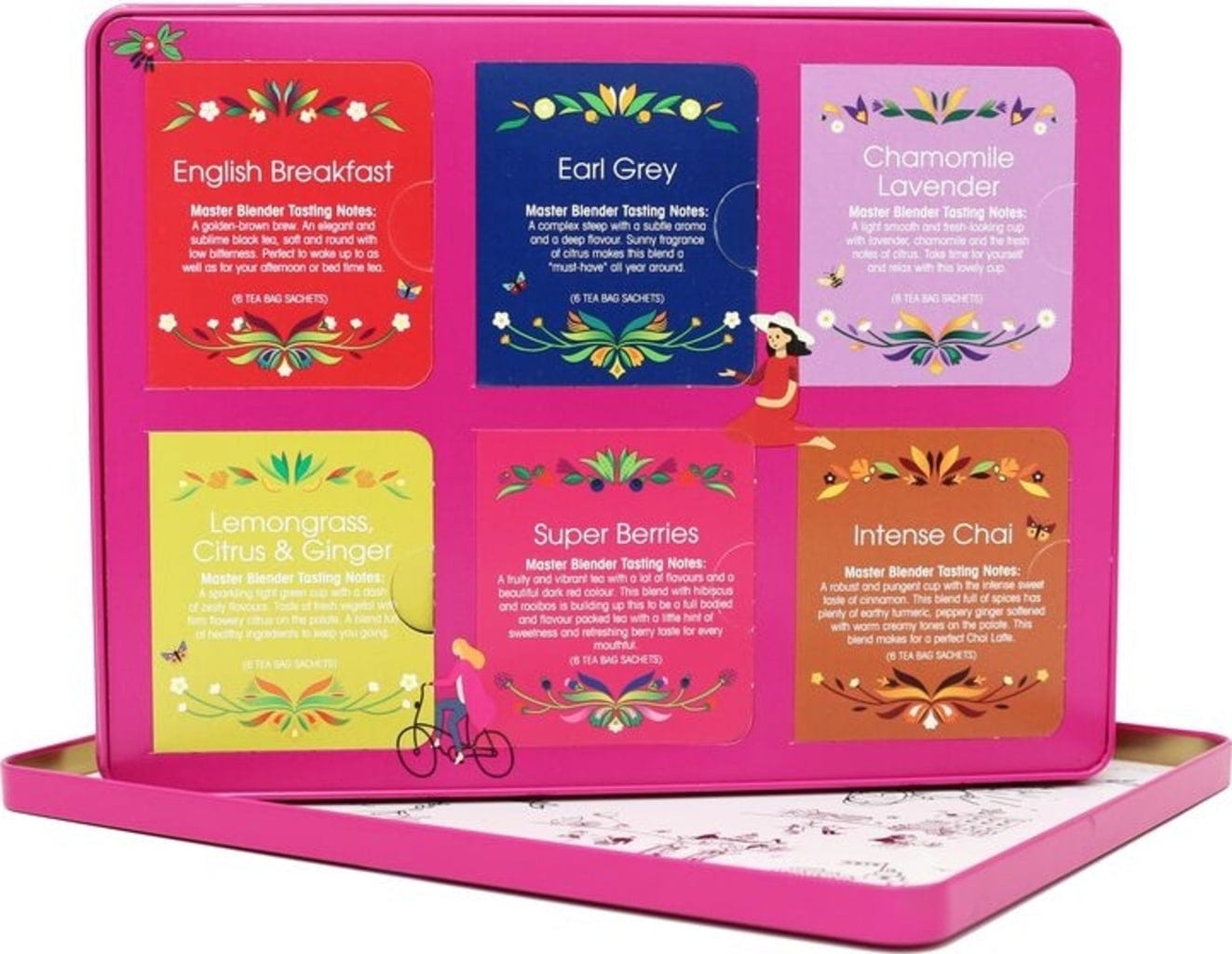 This collection delights classic tea drinkers with 6 popular varieties of tea from tea, herb and spice gardens around the world. Fine aromas in controlled organic quality with the distinctive charm of British tea culture to pamper you: