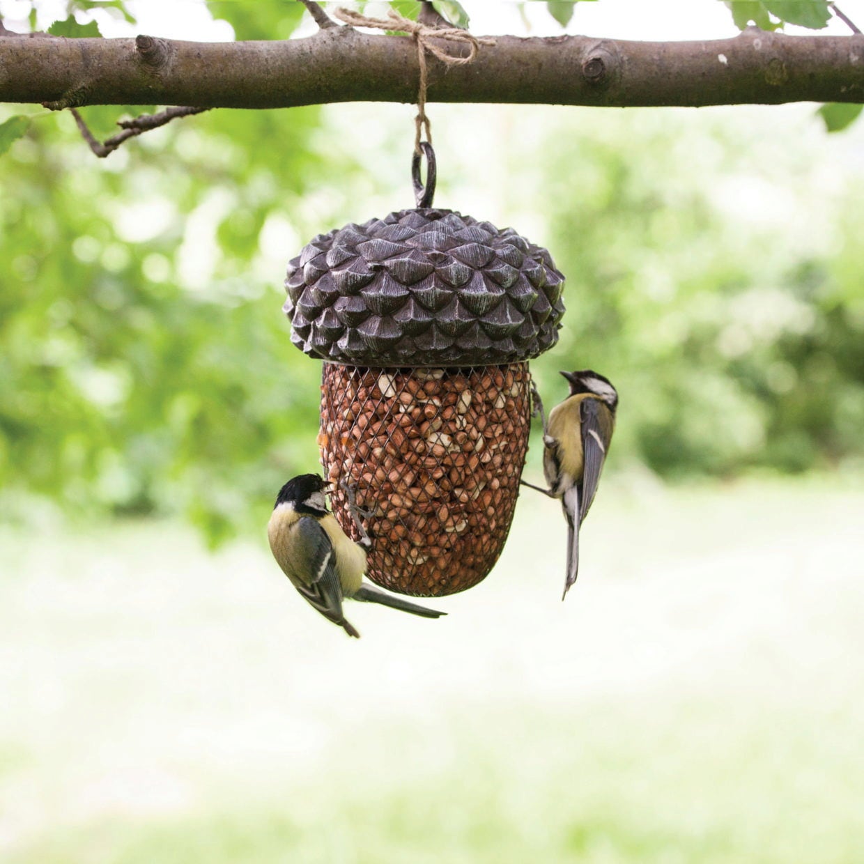 This silo proves that a feeding station doesn't have to look boring! The acorn shape catches the eye and the feeder can be hung on a tree, hung from a beam on the patio or enjoyed from your balcony. To fill the feeder, simply unscrew the upper part and add peanuts and other delicacies.