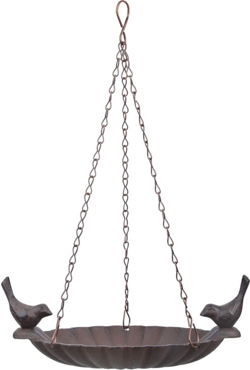 This beautiful bird bath made of sturdy cast iron offers thirsty birds a cosy resting place. With the chain and suspension hook, it can be easily mounted on a tree, a beam or the ceiling. However, the place chosen must be quiet and inaccessible to cats. By the way, birds use a drinking trough filled with water for drinking and a relaxing bath.