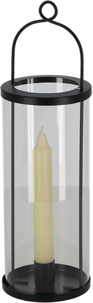 This beautiful lantern has a transparent design and beautiful black features. Enjoy standing it on the floor, or hang it up in the place of your choice using the ring. The glass can also be lifted to allow easy access for replacing the candle.