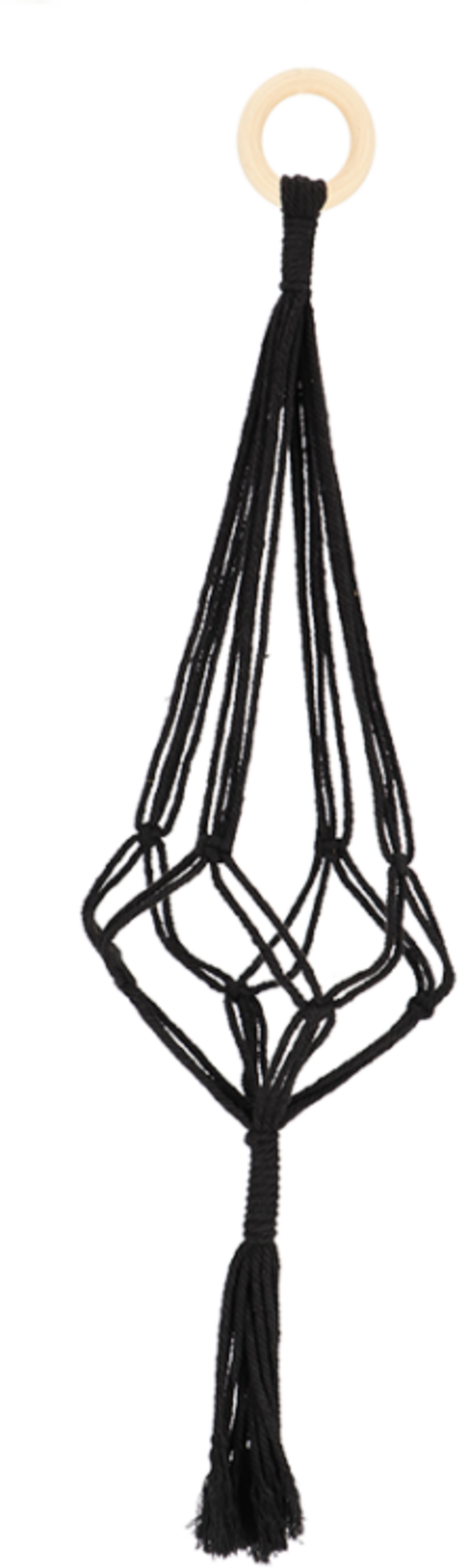 This handmade macramé plant hanger is a stylish way to showcase your plants. Ideal for kokedamas and other houseplants, it adapts flexibly to the shape of the plant. Made from sturdy cotton rope, it ensures a secure grip and blends harmoniously into any interior style with its minimalist boho-chic design.