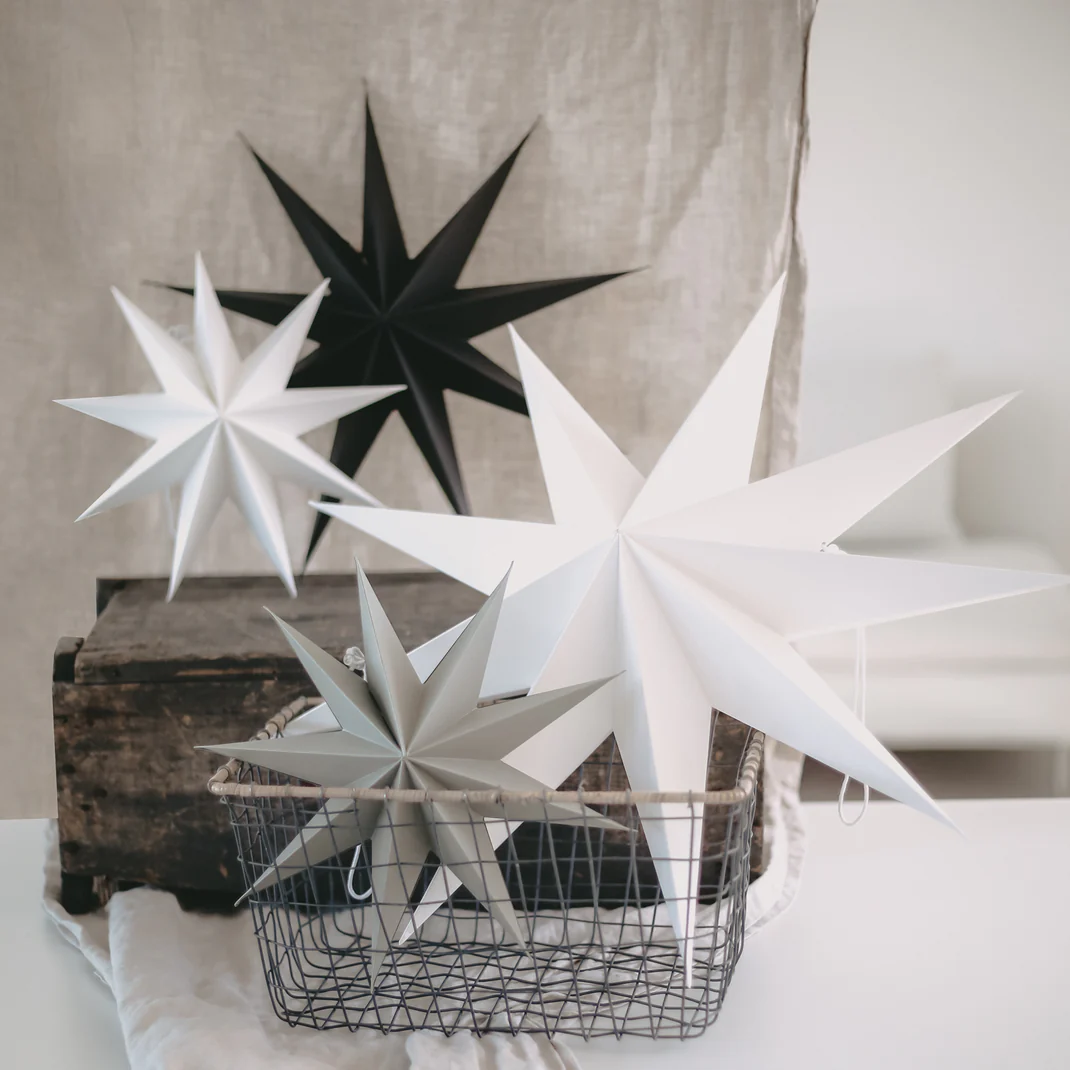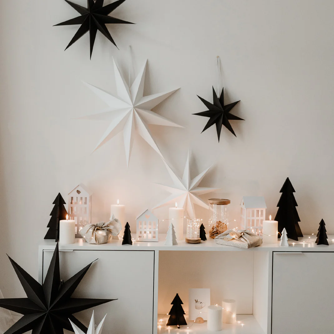 Conjure up a wintry and Christmassy atmosphere in your home with these fold-out paper stars. Whether on the windowsill, on the wall or floating freely in the room, the stars create decorative accents everywhere. After the festive season, they can be easily folded up and stored away to save space and bring joy every year.