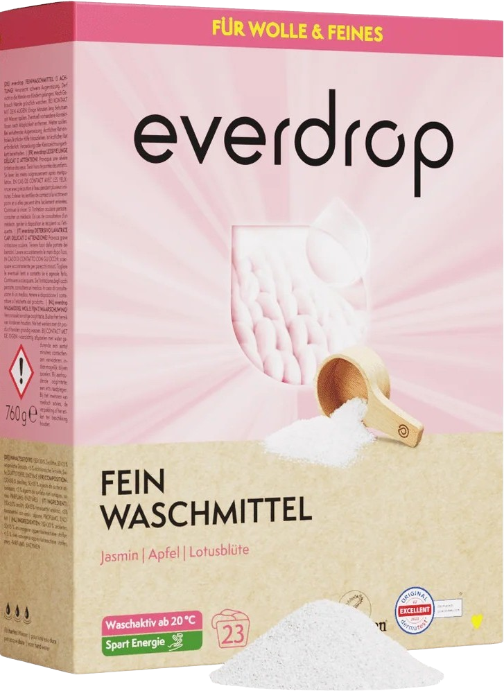 This mild detergent owes its gentle yet effective cleaning power to its formula based on plant-based surfactants and is therefore suitable for delicate textiles such as lace, wool, viscose and silk items. It smooths the fibres and revives colours. The powder becomes active at temperatures as low as 20 °C, which saves energy in the process. The detergent imparts a subtle floral scent.