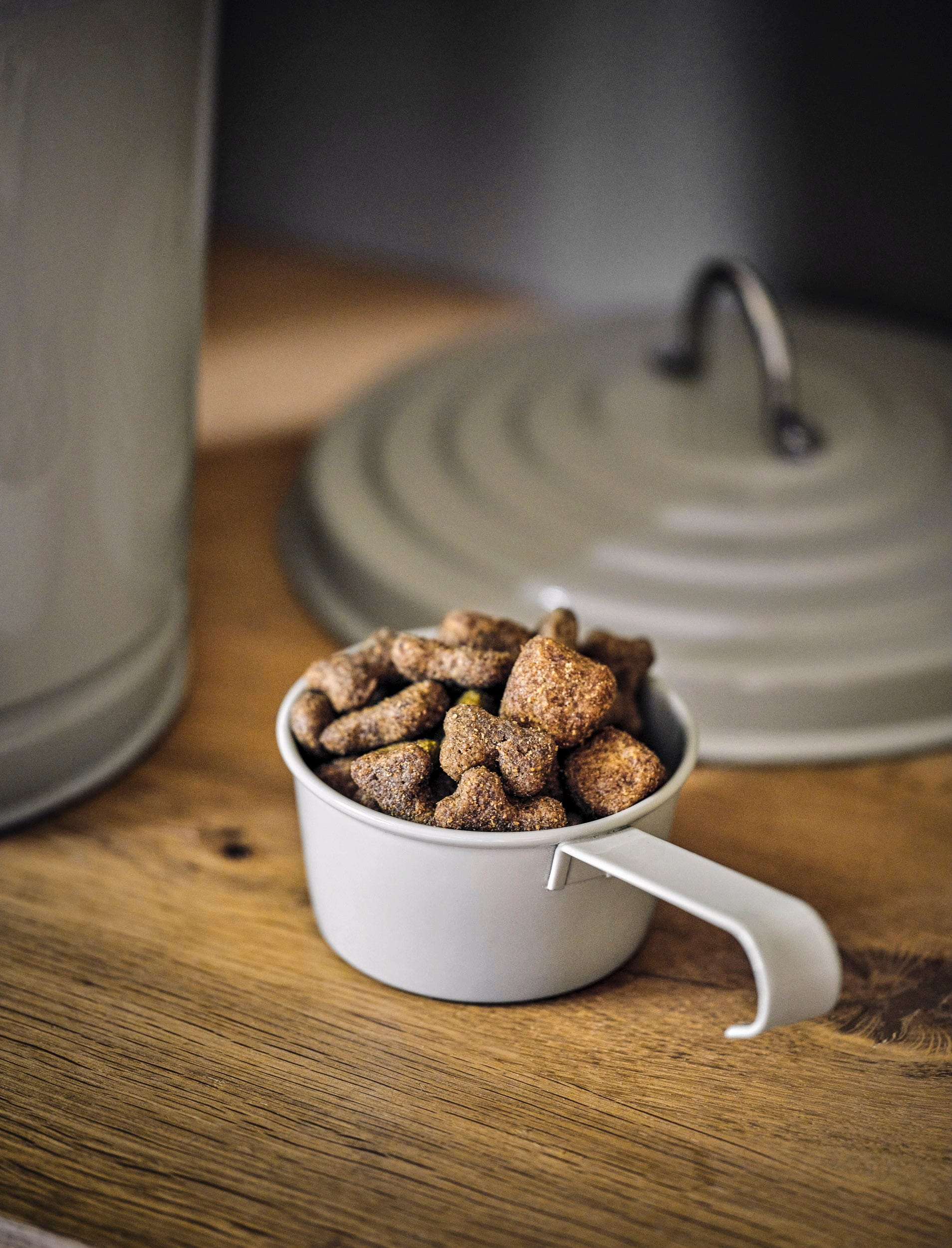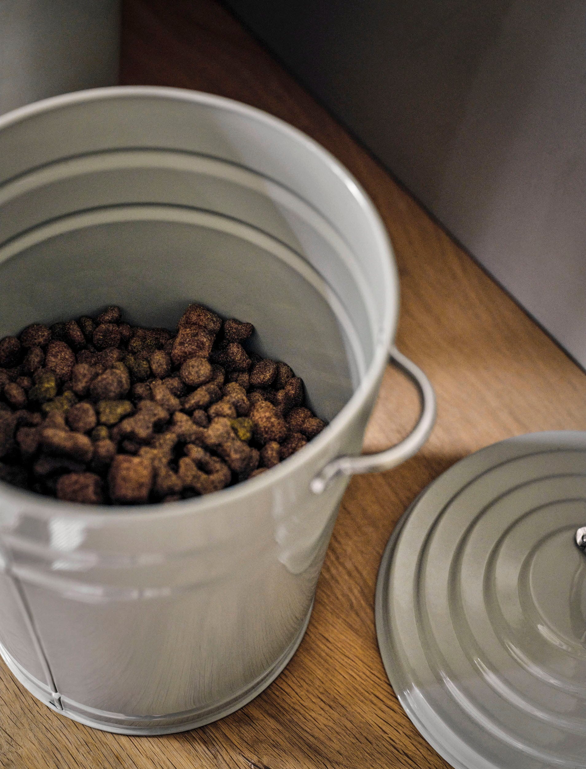 Keep your pet's dry food fresh and flavourful for longer by storing it in this elegant container. It comes with a practical measuring scoop that makes it easy to take out the right amount of food.