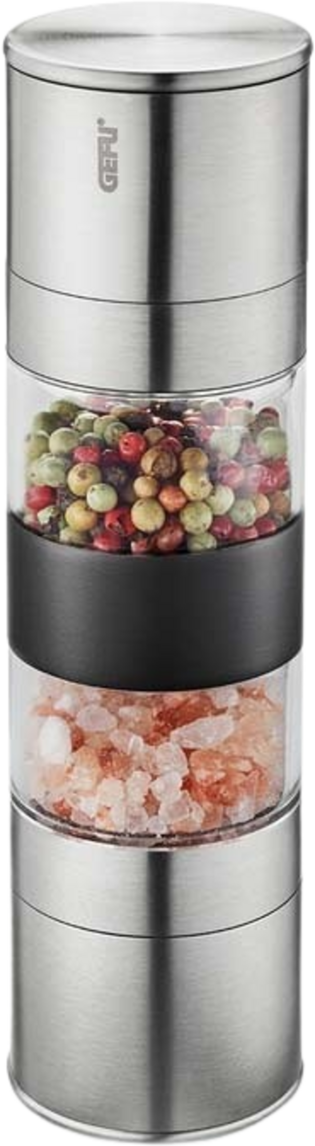 A clever, space-saving mill for salt and pepper