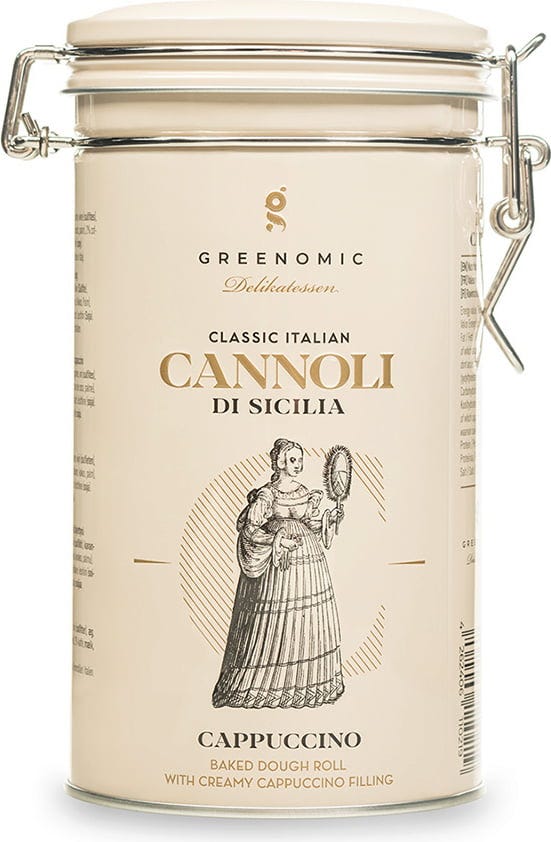 Cannoli are a classic Sicilian pastry with a creamy filling. They are ideal with coffee or as a delicious snack at any time. The beautiful tin comes with a lid that can be tightly closed thanks to the clip thereby preserving the freshness and flavour of the cannoli.