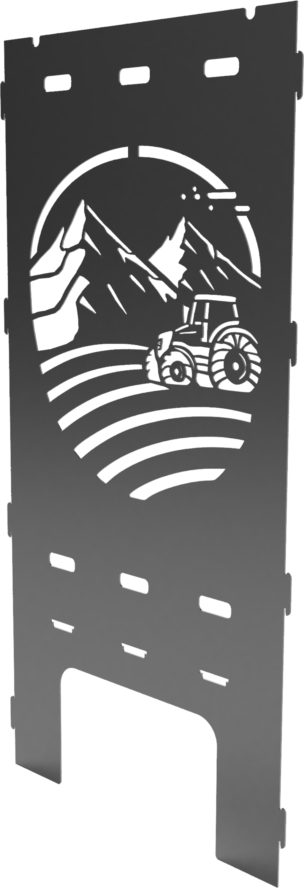 This steel side panel impresses with its natural design composed of fields, mountains and a tractor, making it a wonderful gift for anyone who has a farm.