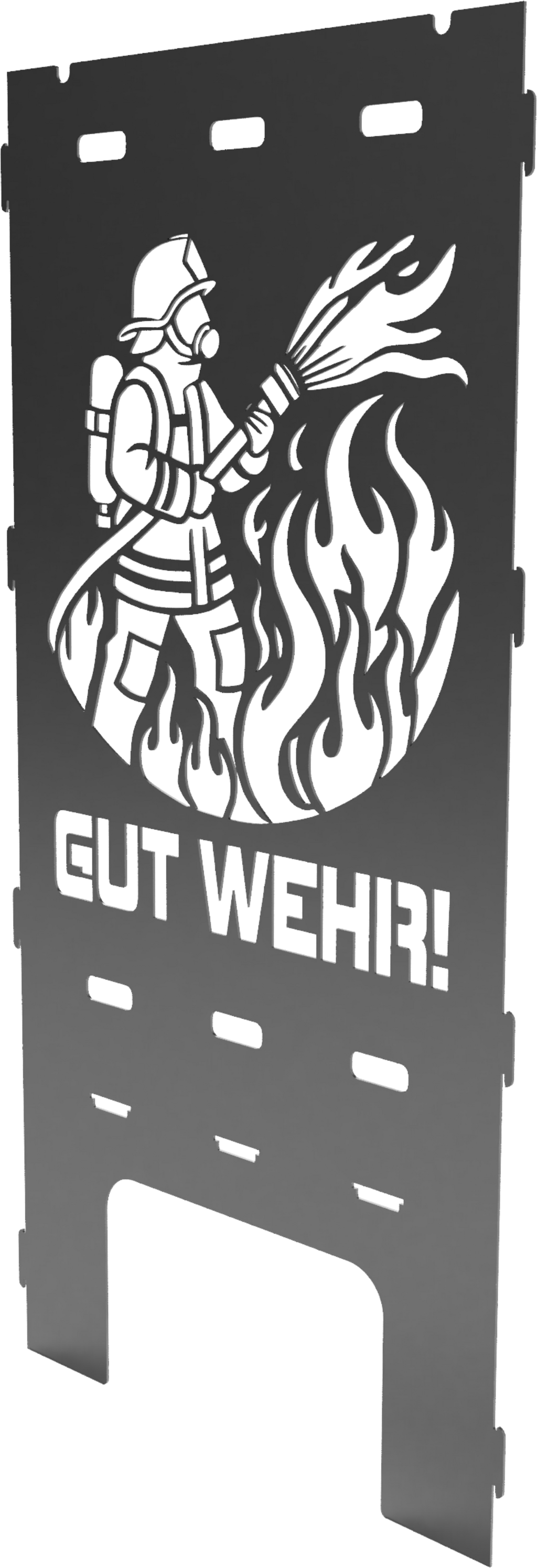 This steel side panel impresses with its detailed fire brigade design. It is the ideal way to honour this valuable profession and to give those who work in this field a special treat.