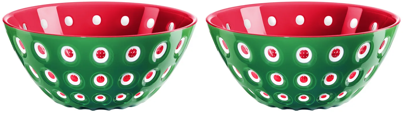 guzzini Set of 2 Bowls Ø12cm LE MURRINE, Emerald Green/White/Red