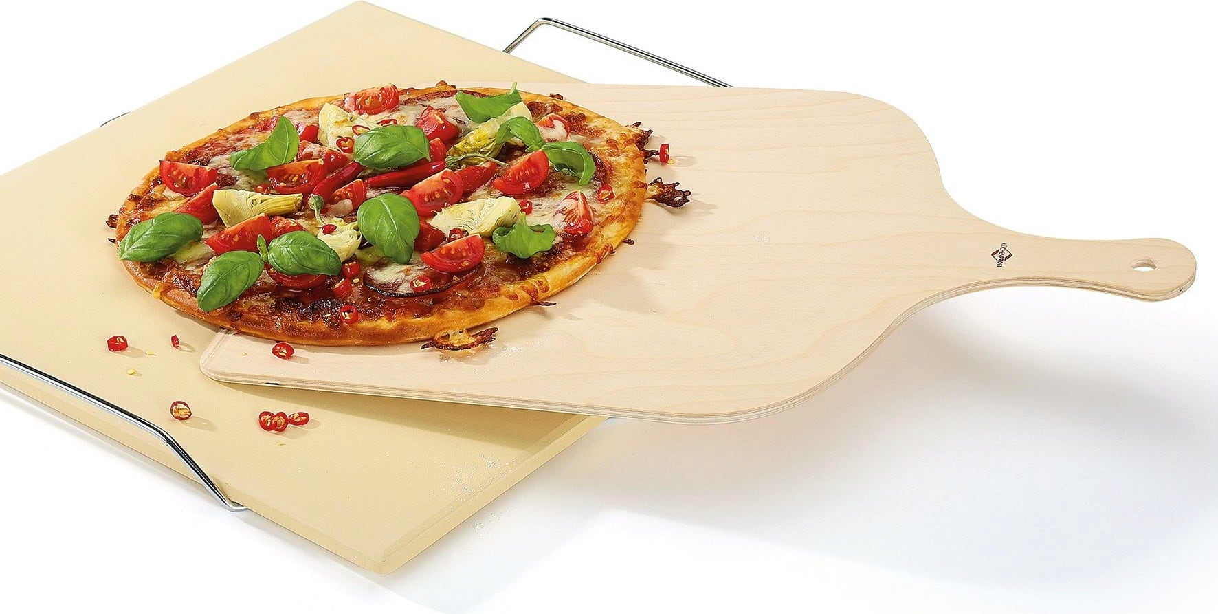 - Slides easily under pizza, tarte flambée, etc., thanks to the flattened side