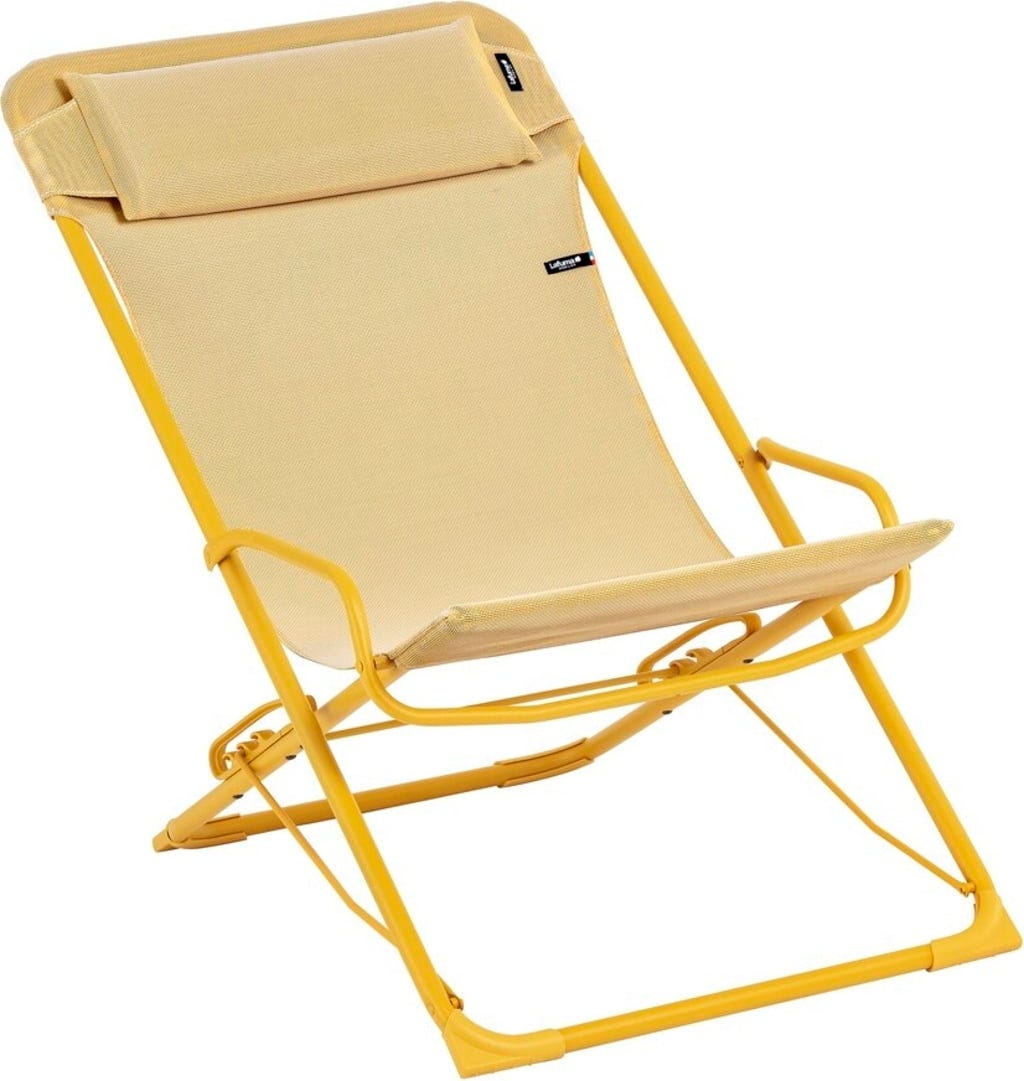 A secure locking system lets you move smoothly between three comfortable positions, from upright sitting to a relaxed reclining position. The durable material is resistant to rain and UV rays and dries quickly, so the chair is ready for use again soon after a shower. Its low weight and very flat folding dimensions make this colourful chair easy to store or transport to your favourite spot.