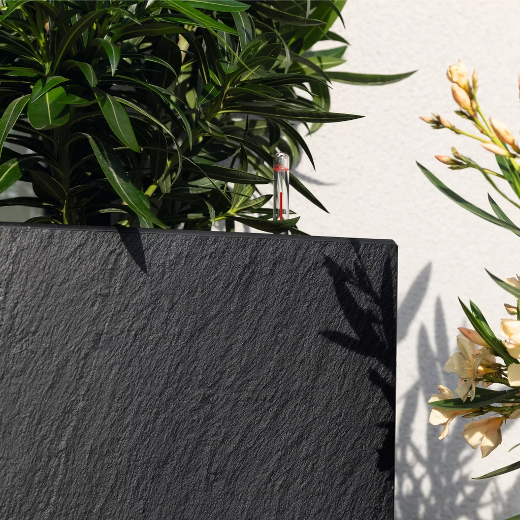 Give your garden or patio an elegant look with the CANTO Slatestone planter. It combines a tasteful slate look with a multi-award-winning design. The planter offers enough space for magnificent plant arrangements, and its integrated original LECHUZA watering system makes it the perfect companion for your plants.