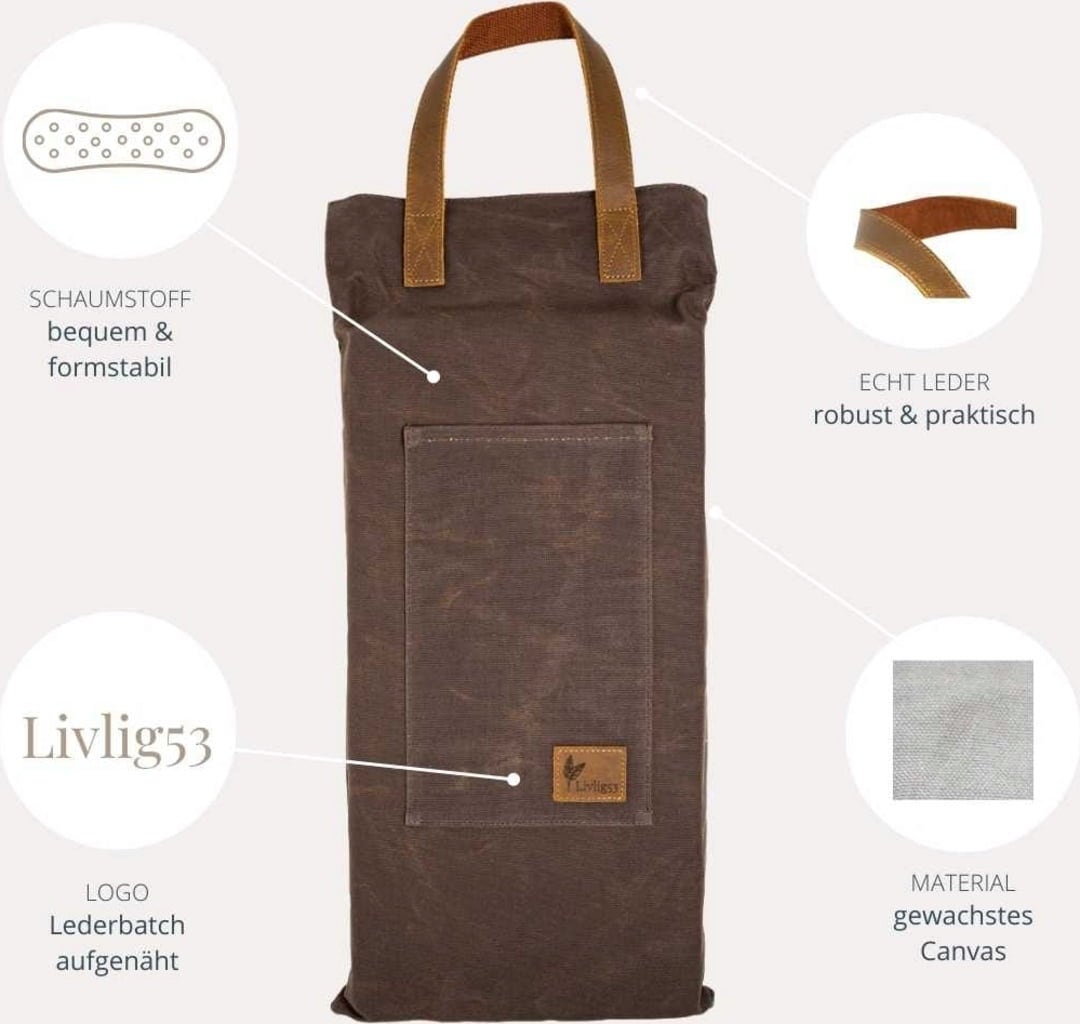 Since the knee cushion is covered with robust cotton treated with beeswax, it is wind and water-repellent. Unavoidable creasing of the knee pad causes milky colour changes in the fabric - this gives it its unique patina and irresistible vintage character. However, if you don't like the colour, you can make it disappear again by using a standard hair dryer.