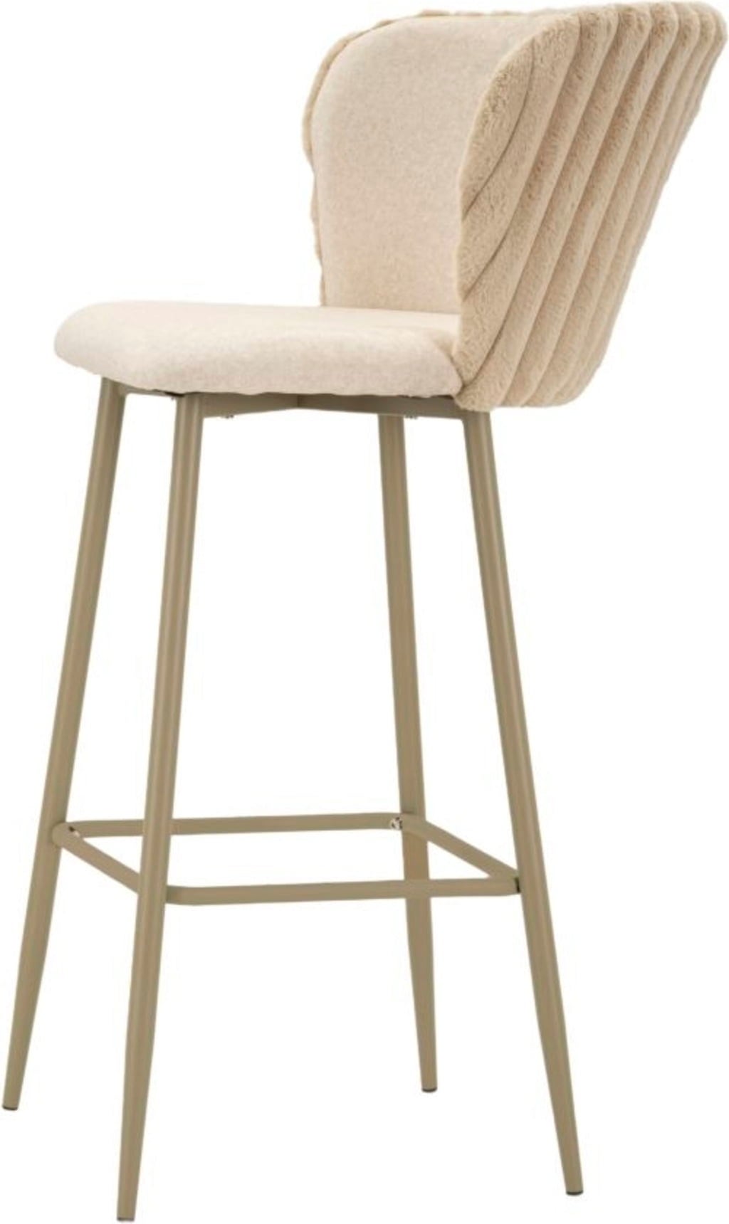 Are you ready to give your kitchen island or bar area an instant style and comfort upgrade? The set of 2 Alaska bar stools in an elegant cream colour is the perfect solution. These stools combine sophisticated design with maximum seating comfort. The modern colour scheme is perfectly accentuated by the particularly comfortable, upholstered seat and the elegant, velvety ribbed backrest.