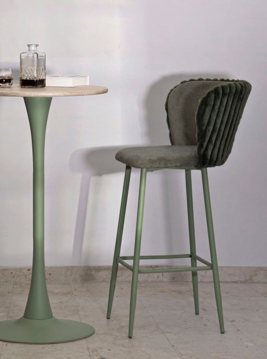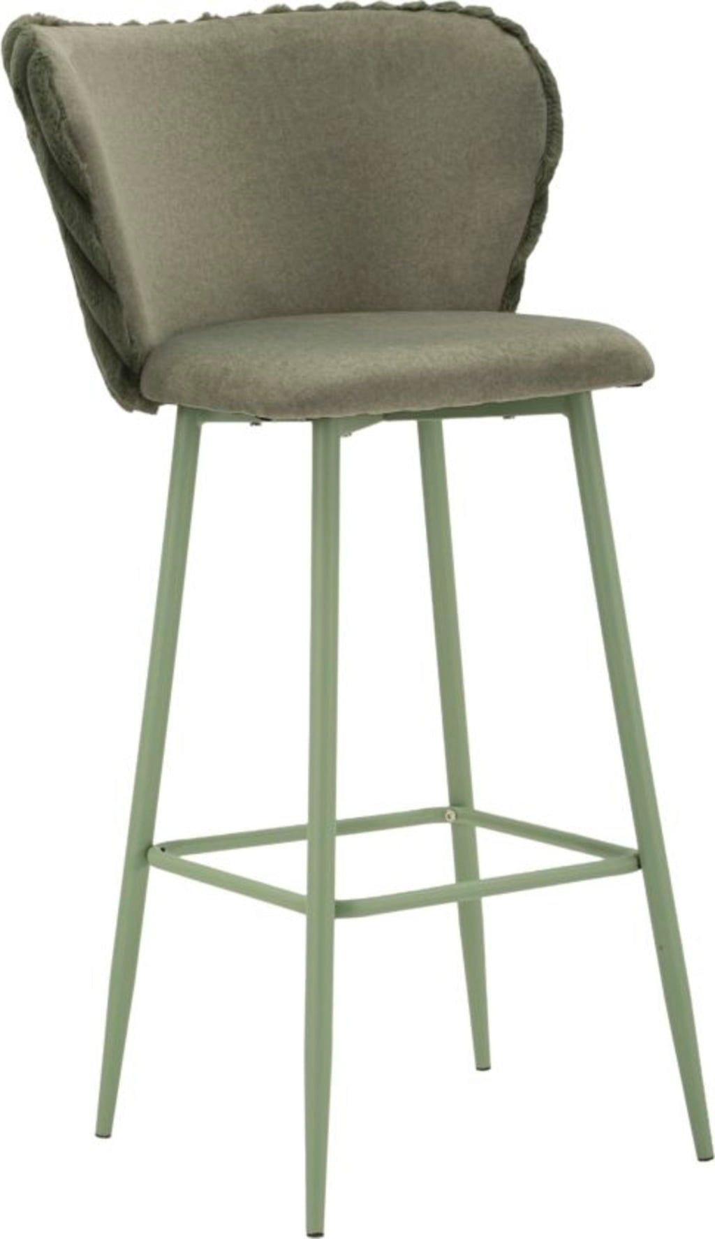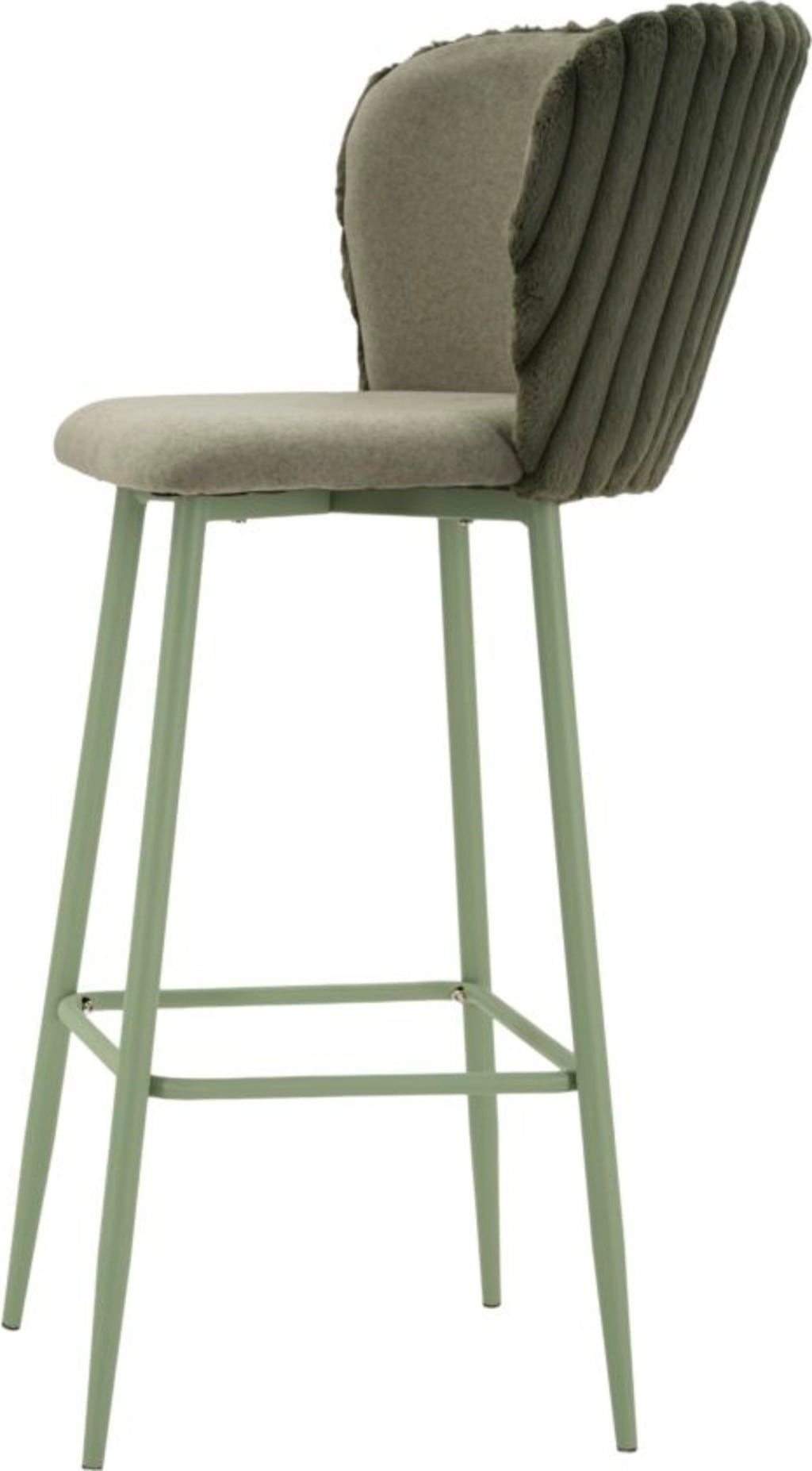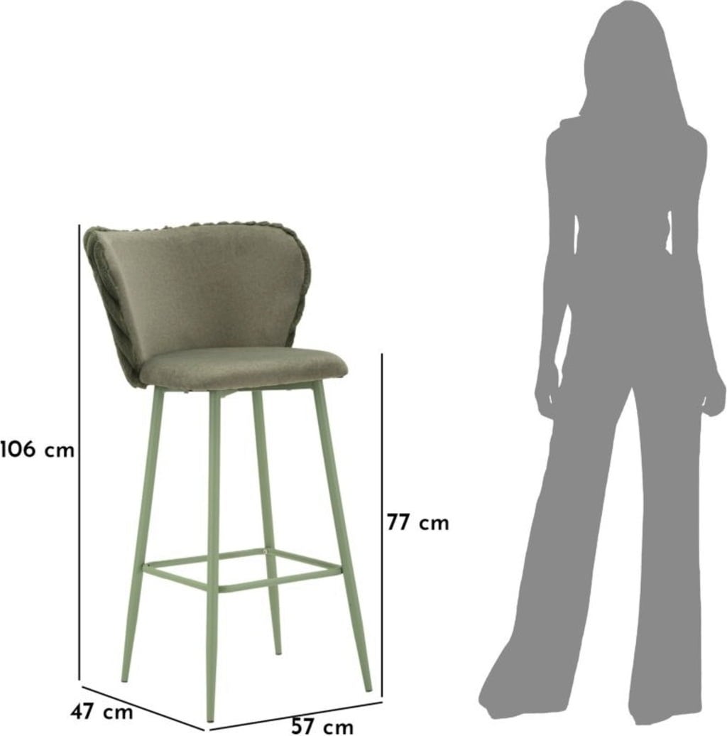 Are you ready to give your kitchen island or bar area an instant style and comfort upgrade? The set of 2 Alaska bar stools in elegant green is the perfect solution. These stools combine sophisticated design with maximum seating comfort. The modern, on-trend sage green colour scheme is perfectly accentuated by the particularly comfortable, upholstered seat and the elegant, velvety ribbed backrest.