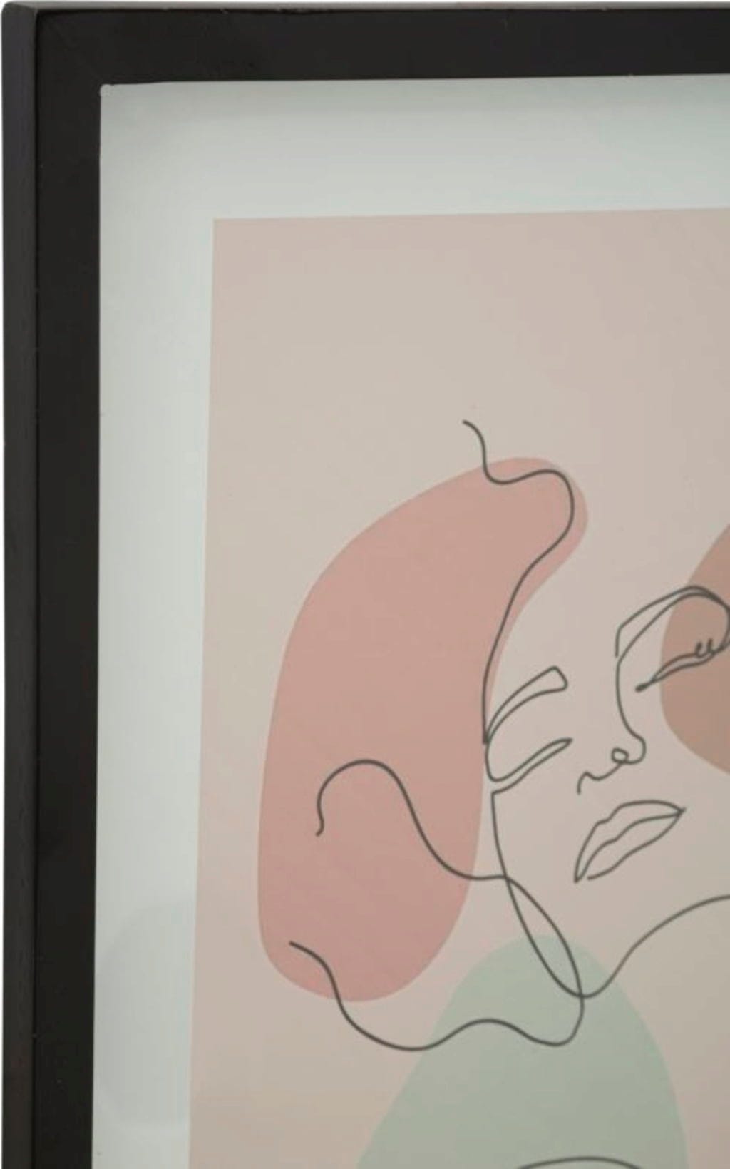 Bring an oasis of calm directly to your wall with this framed art print by Mauro Ferretti. The motif captures a female portrait in fine minimal art, combining flowing lines with soft color fields in earthy tones and a touch of pastel green. Thanks to the simple black frame, the artwork is elegantly encased and can be effortlessly integrated into various interior styles.