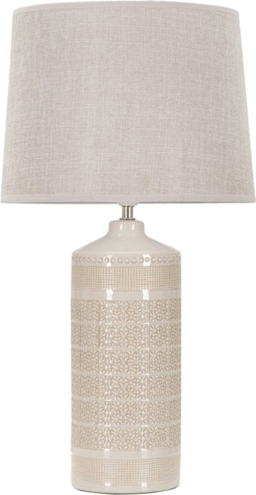 The fine patterns in the ceramic body create tactile depth and highlight the high-quality craftsmanship. The structured base is complemented by a simple, light-coloured fabric lampshade, which ensures pleasant, diffused light distribution and harmoniously rounds off the lamp's clean lines. Whether on a bedside table, a console, or a side table – the Graphs table lamp fits perfectly into any modern interior thanks to its neutral colouring and timeless aesthetics.