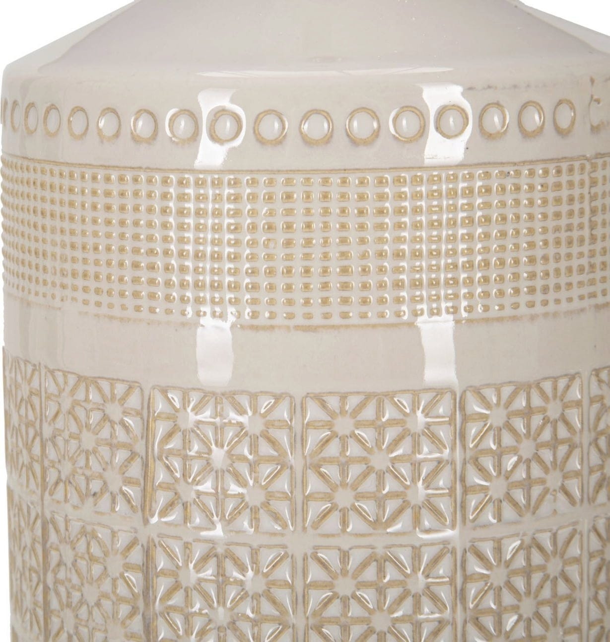- Ceramic base with relief pattern