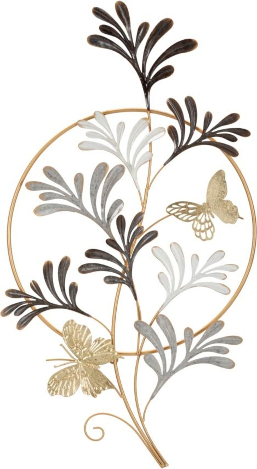 Add a poetic touch to your home with the Lixy wall decoration by Mauro Ferretti. This decorative 3D metal wall object features an artistically designed branch with stylized leaves in soft shades of white, grey, and dark earth tones. Enclosed in a round, golden frame, the design is complemented by two filigree, gold-coloured butterflies that give the arrangement a special lightness.