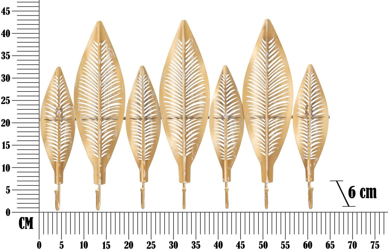 At the end of each leaf is a sturdy hook, providing a total of seven hanging options for jackets, bags, or scarves. The soft patina and the delicate cut-outs in the leaves give the metal a wonderful lightness.
