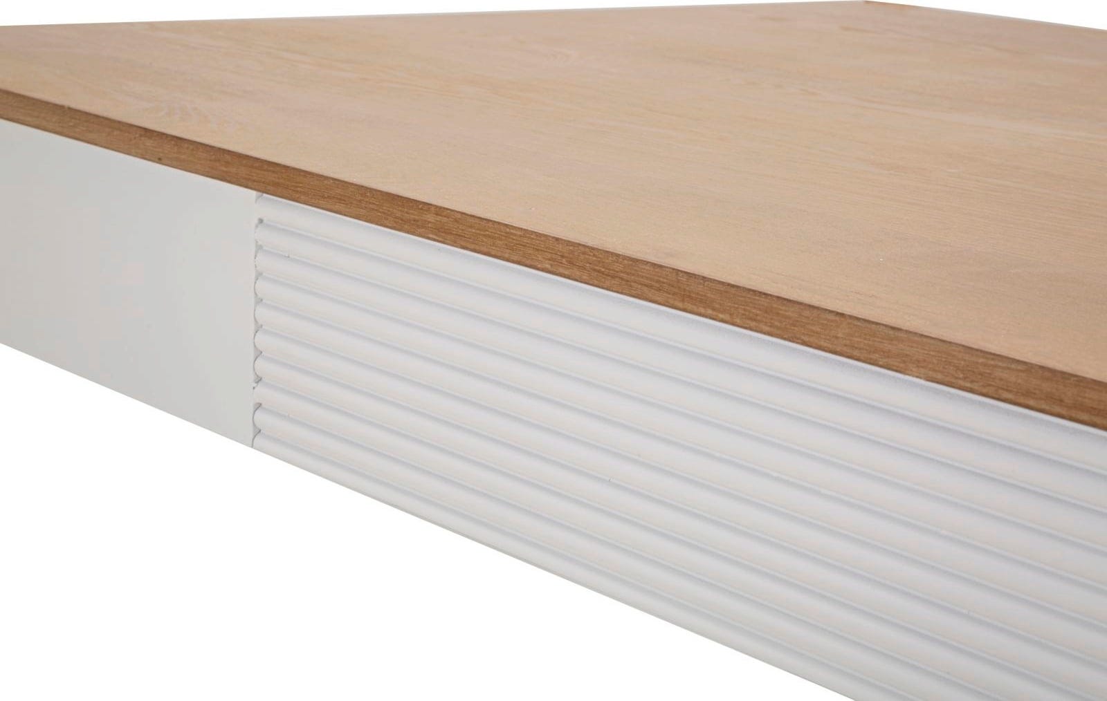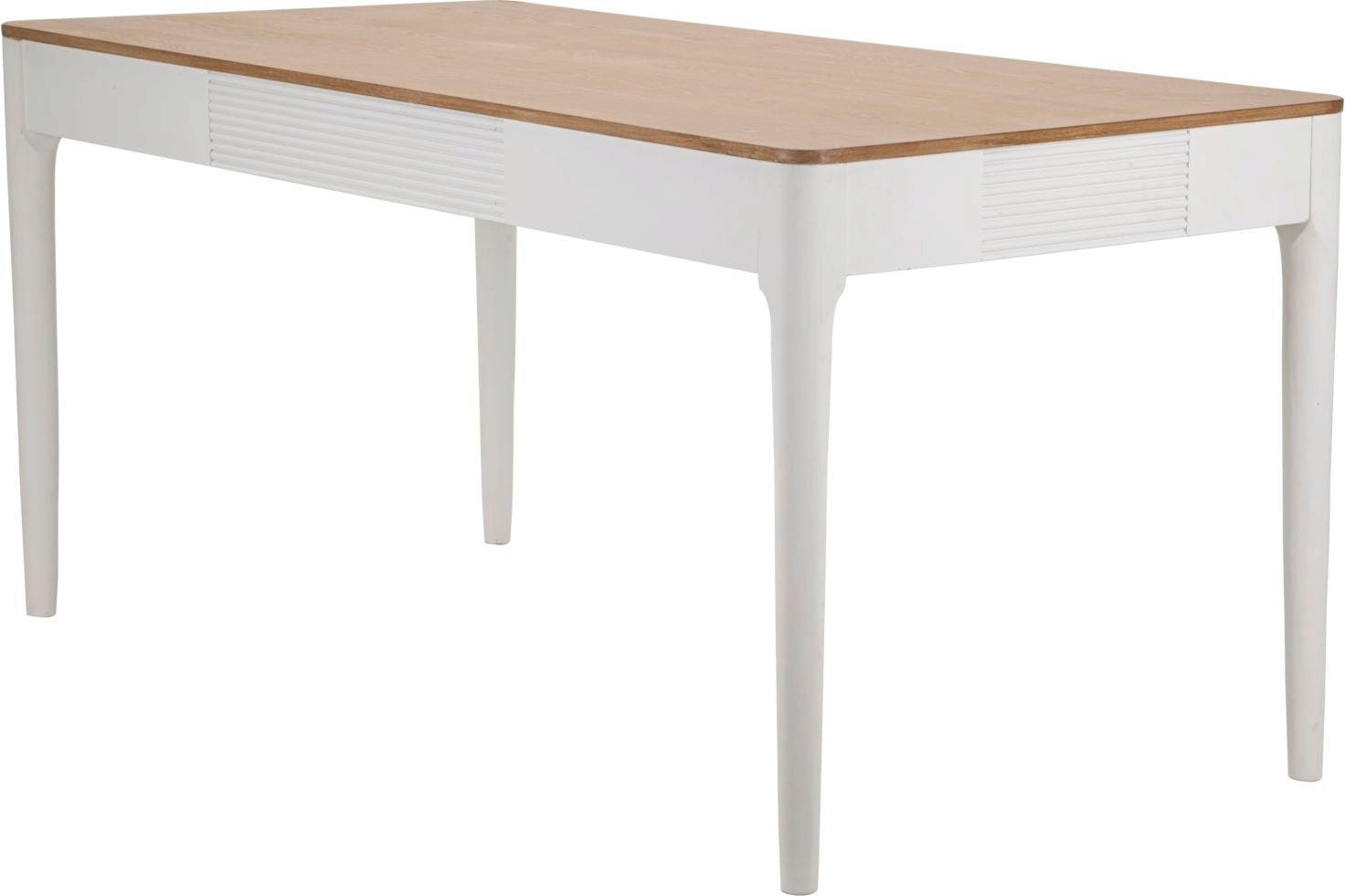 The design impresses with a tasteful contrast: the frame and the slender, tapered legs are finished in pure white, while the brown wooden top creates a warm, natural atmosphere. A subtle design detail is the fine grooved structure on the frame, which adds a sophisticated touch to the minimalist look. Whether for daily breakfast or cozy evenings with friends – the Matera is a versatile piece of furniture that perfectly embodies Scandinavian lightness!