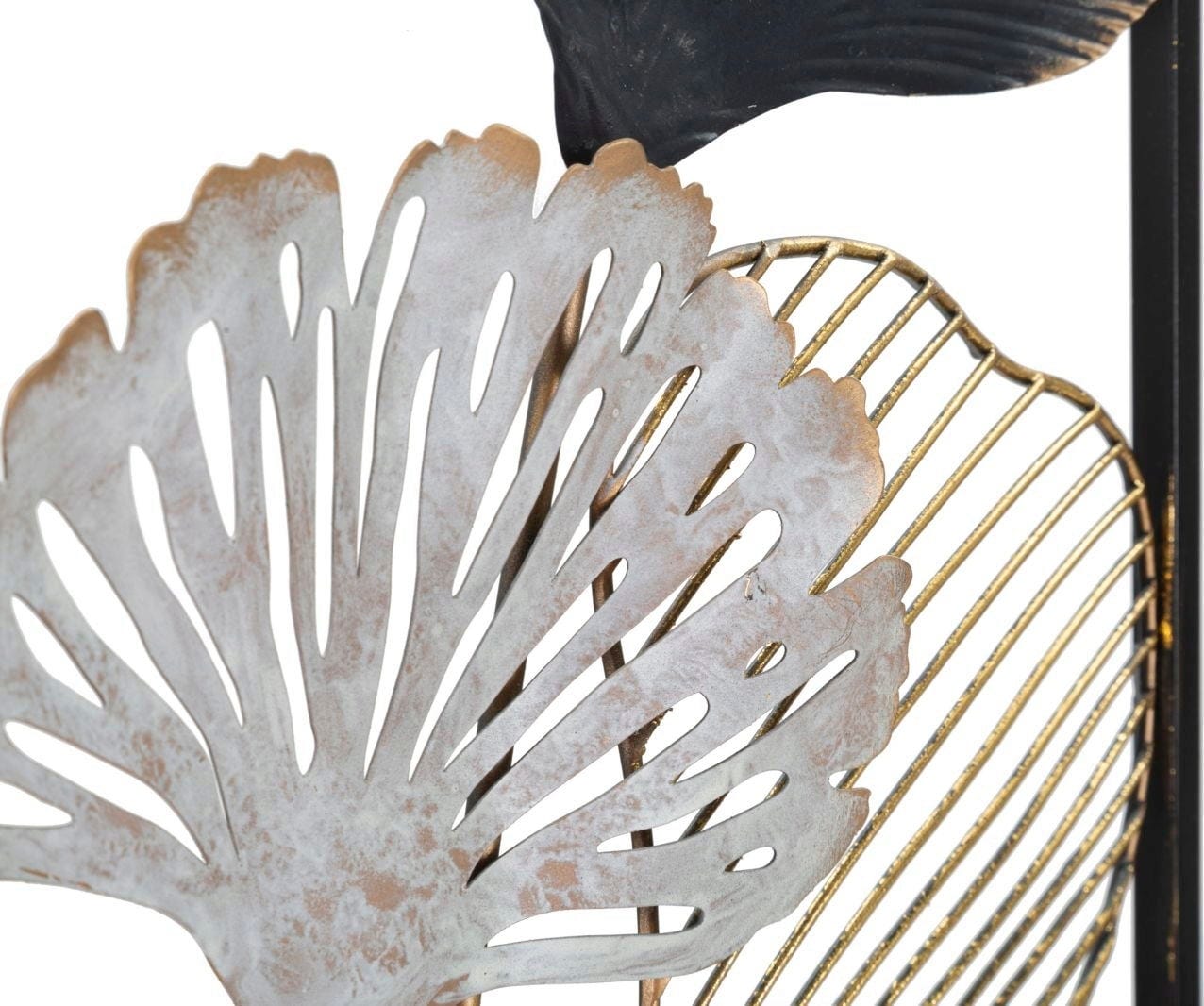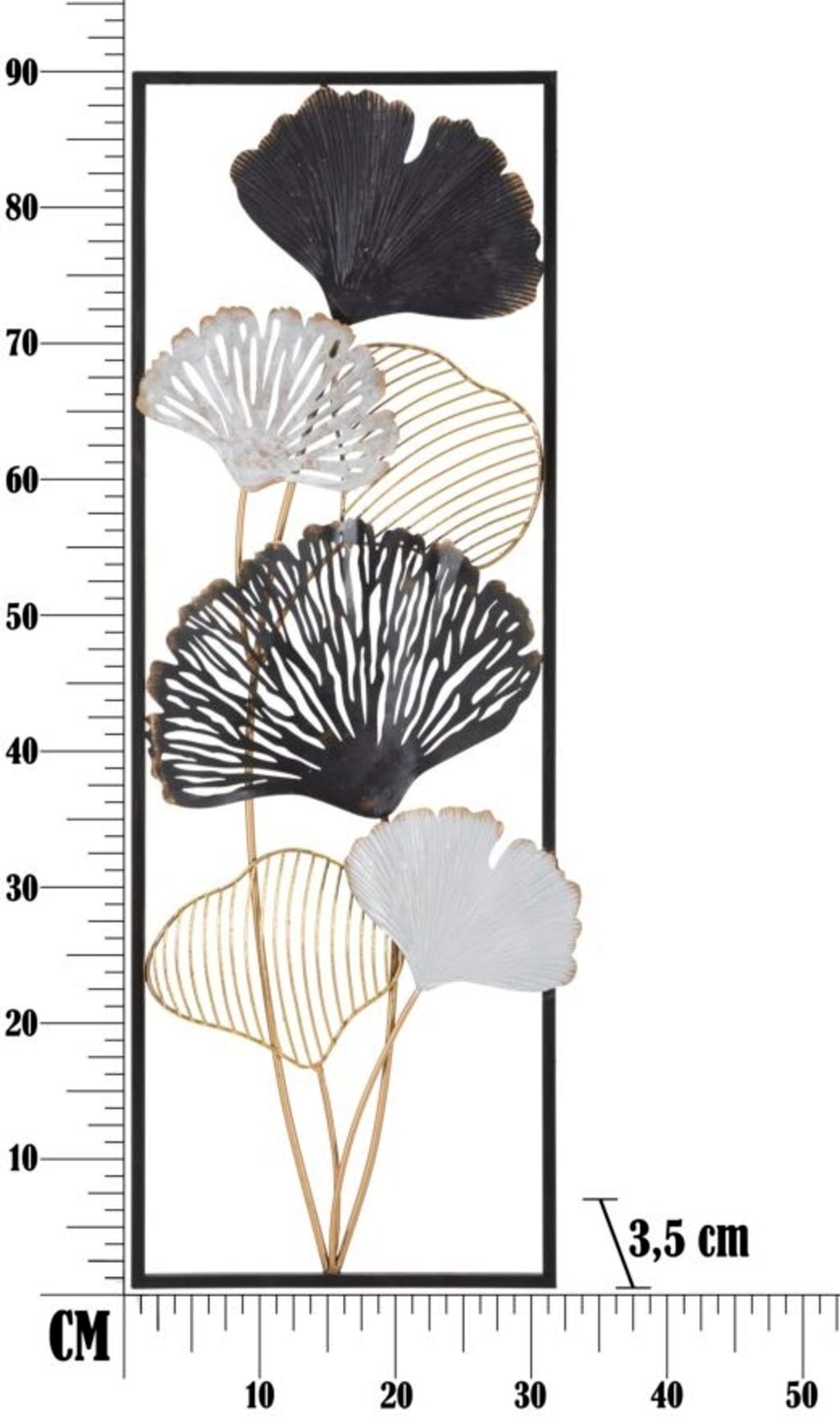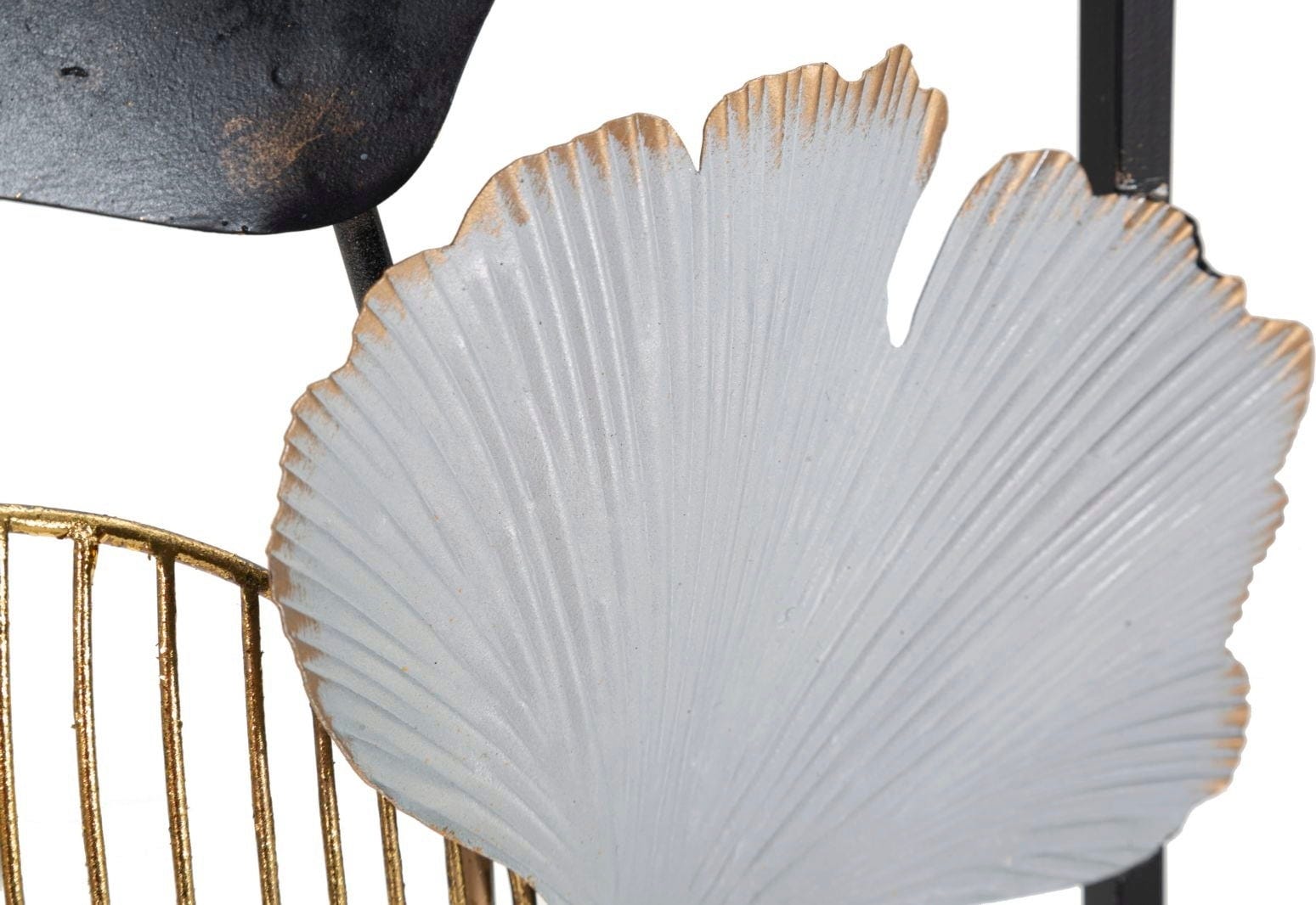 Give your walls an expressive personality with the Ory -A- Wall Decoration by Mauro Ferretti. This impressive metal panel perfectly implements the current trend of 3D wall design and brings a surprising, artistic atmosphere to your home. The design impresses with its fan-like ginkgo motifs, which shine in a harmonious interplay of elegant white, deep black, and luxurious gold.