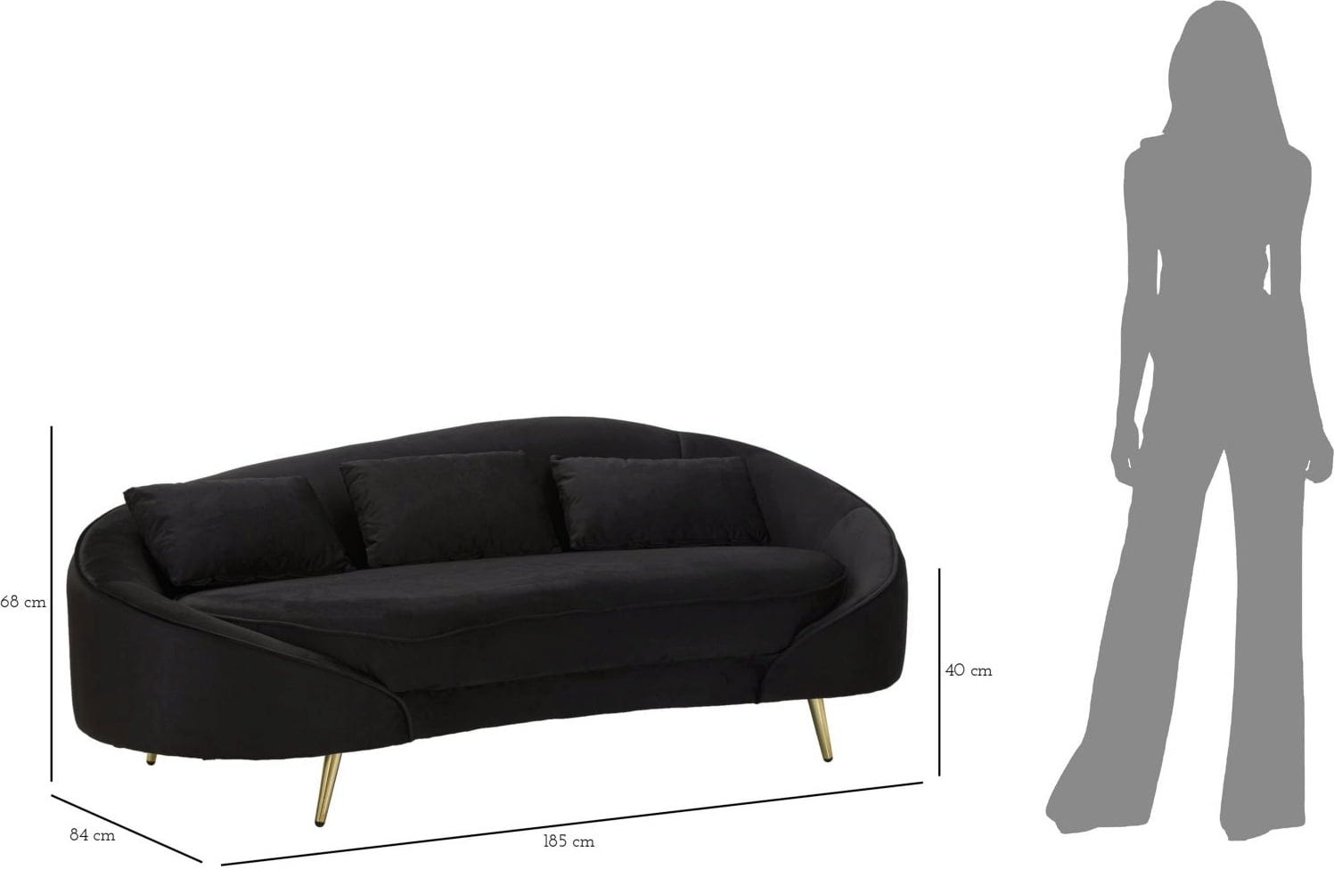The look is perfectly complemented by the slim, shiny golden metal legs, which give the sofa an irresistible touch of elegance and glamour. A set of 3 matching cushions is included to round off the high level of seating comfort. This sofa is the ideal addition to modern and elegant interiors that prioritise design, comfort and a luxurious statement.