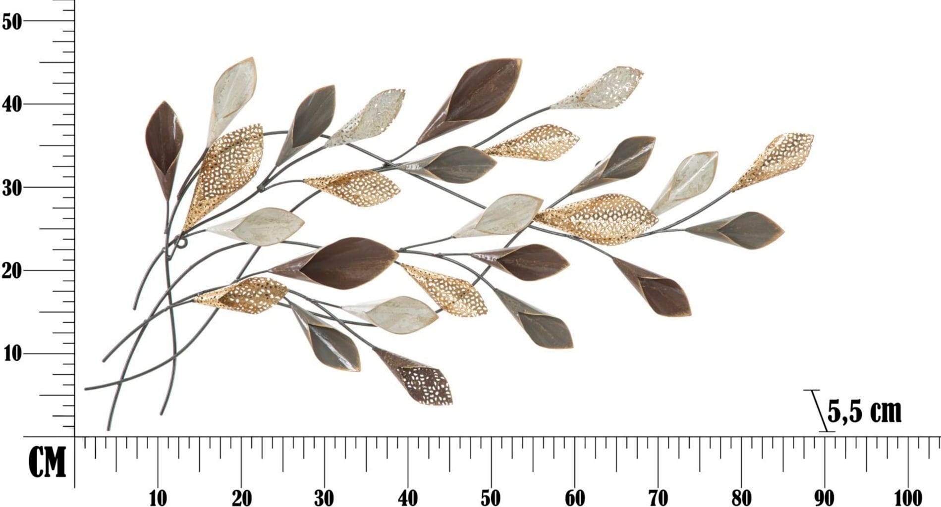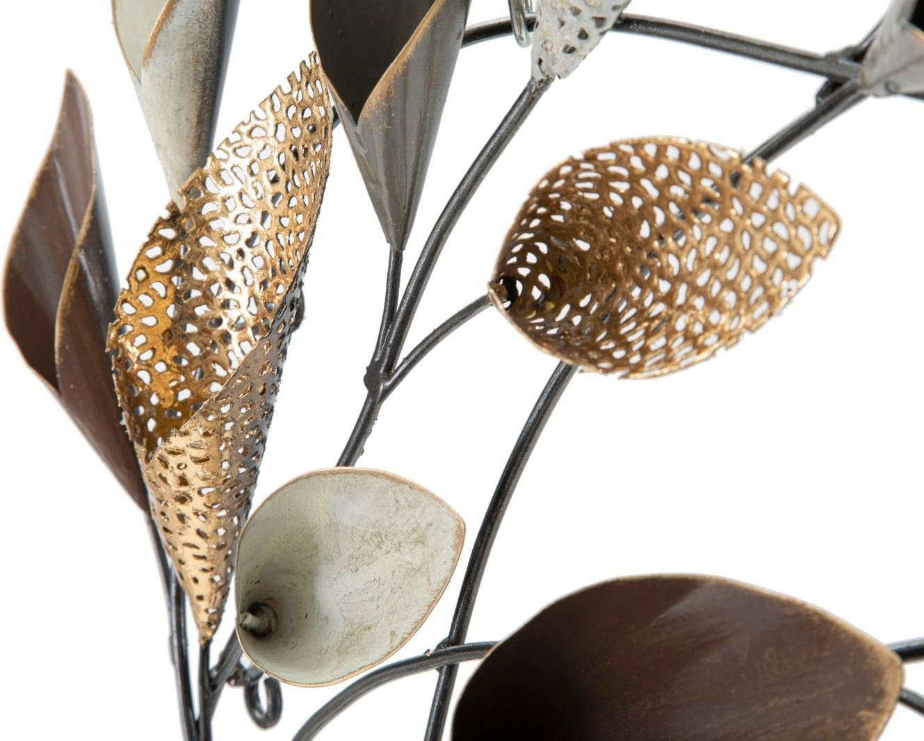 Give your room a vibrant and at the same time luxurious atmosphere with the Ramo Wall Decoration by Mauro Ferretti. This impressive 3D metal panel breaks with conventional shapes and brings a surprising dynamism to your wall. The nature-inspired design is reminiscent of branches gently swaying in the wind, adorned with artistic, chalice-shaped leaves.