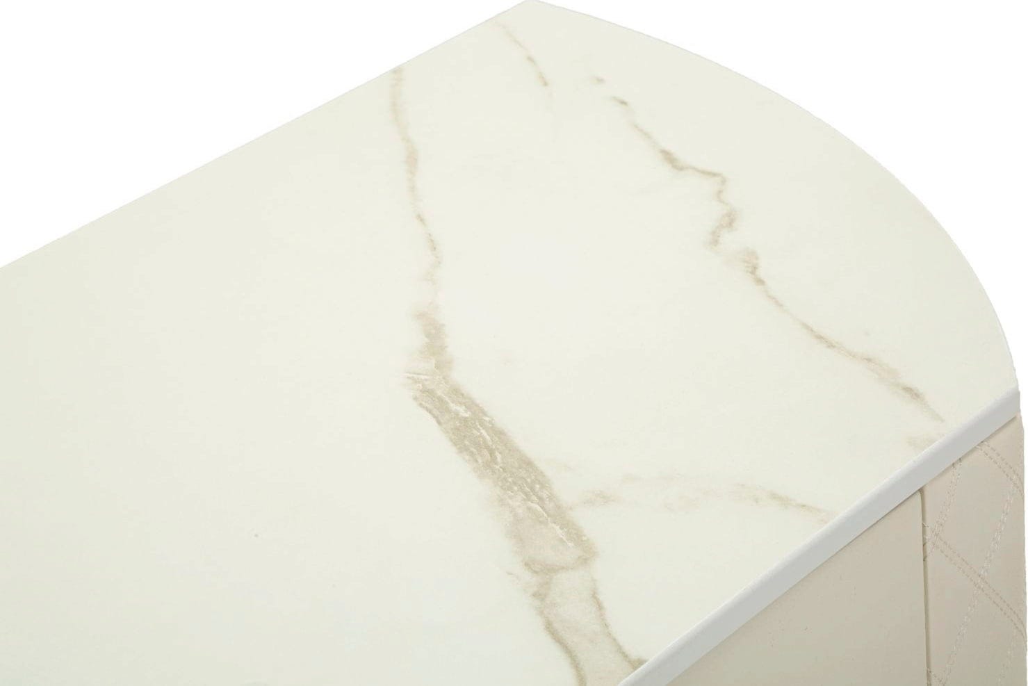 Instantly add a touch of modern luxury and understated elegance to your hallway or living room with this stylish wall console. The semi-circular console is characterised by its luxurious finish: the sides are covered in soft, creamy white, quilted faux leather, giving the piece of furniture a noticeable, sophisticated texture.