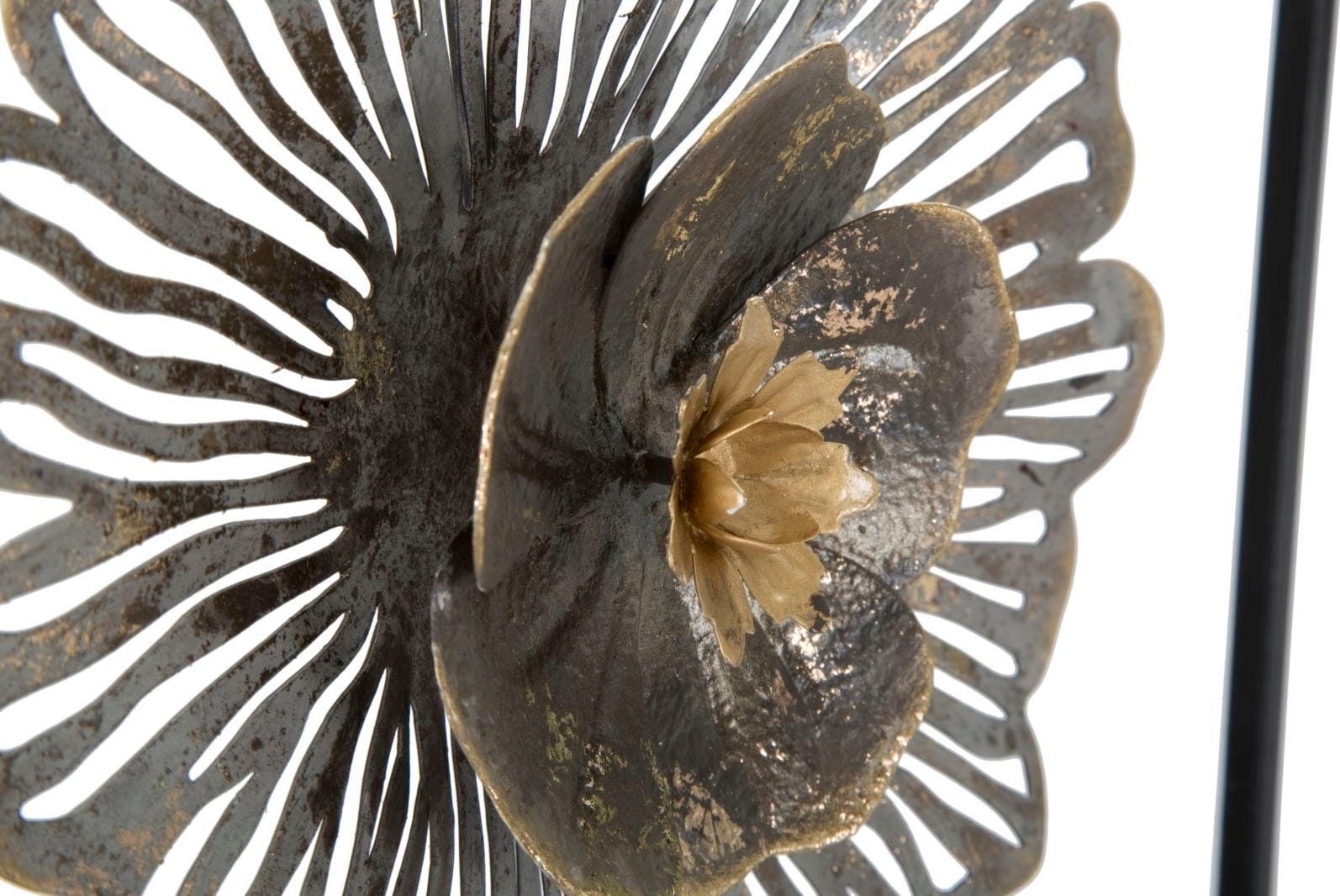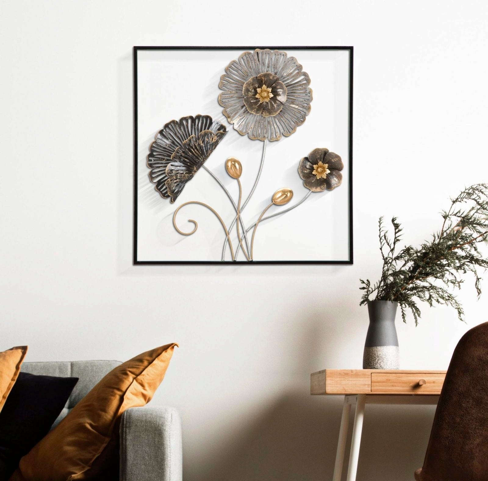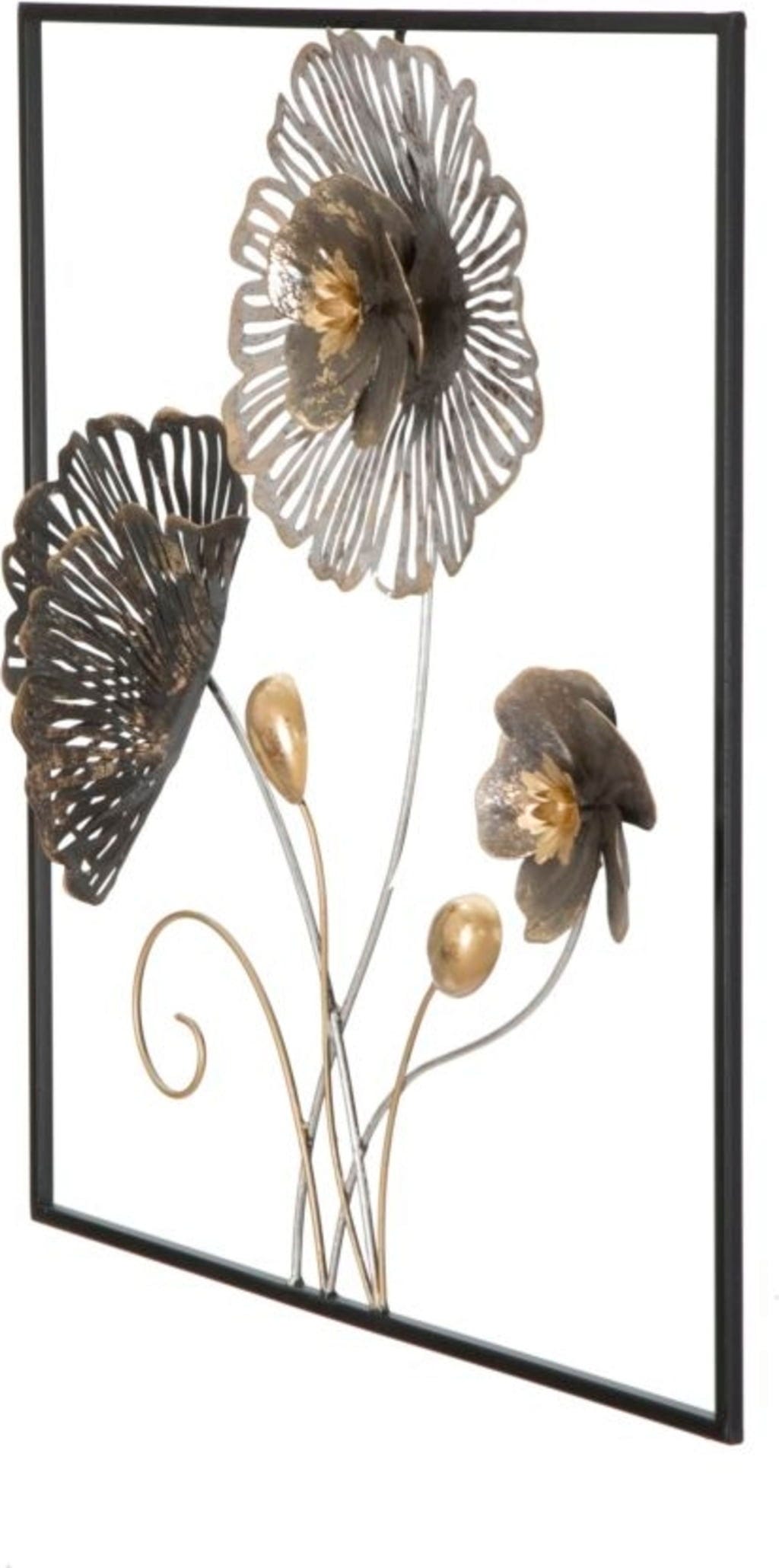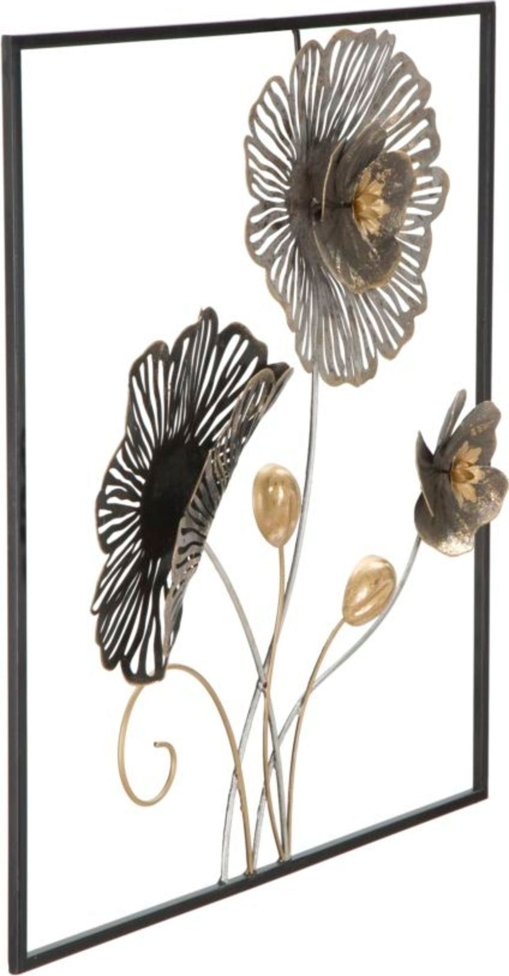Bring a fascinating blend of nature and modern art into your home with the Square Wall Decoration by Mauro Ferretti. This square 3D metal panel is a true trend piece that impresses with its sculptural depth and detailed craftsmanship. The artistic floral motifs in an elegant mix of dark metal tones and warm gold accents instantly add a touch of glamour to any room.