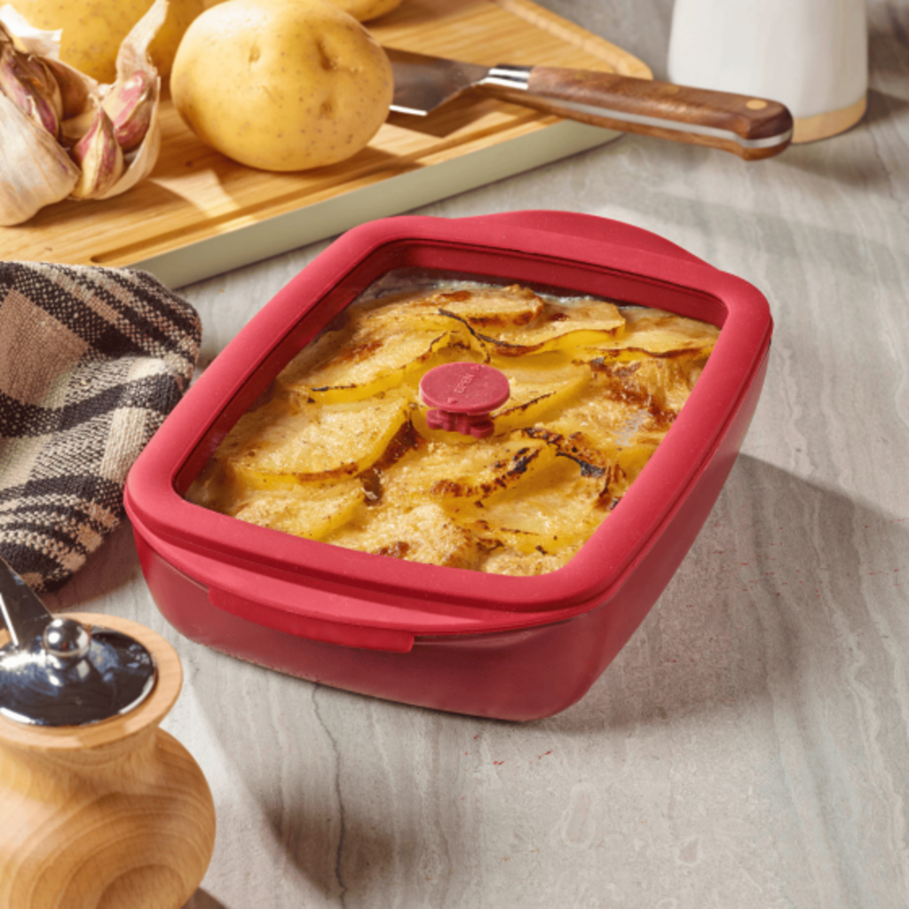 English reviews written for Pebbly Rectangular Glass Casserole Dish with Glass Silicone Lid, 0.8 L
