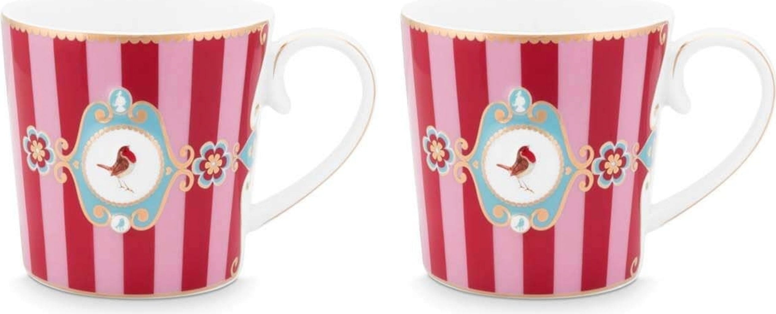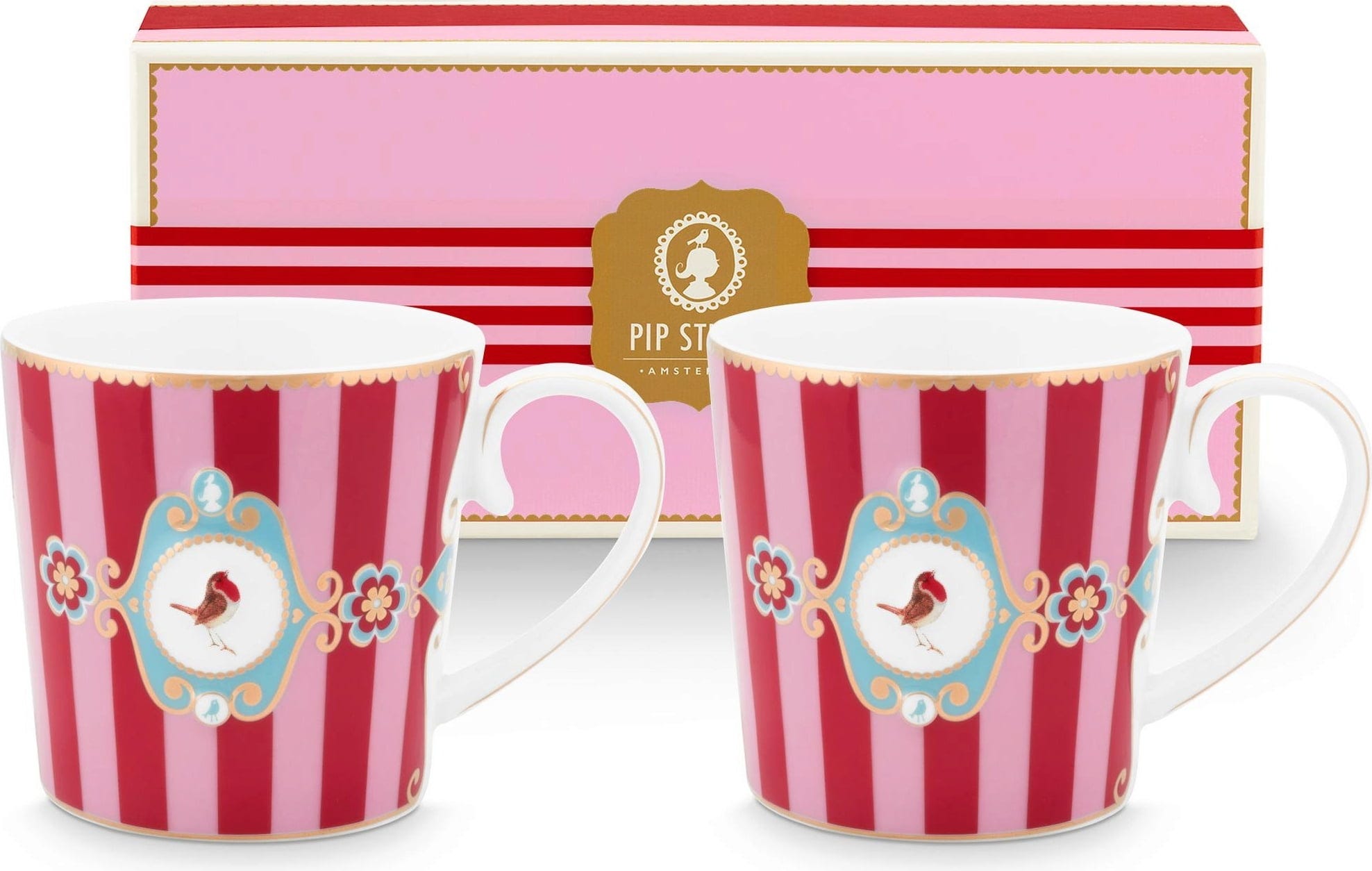 Pip Studio Love Birds Mug Set, Red striped