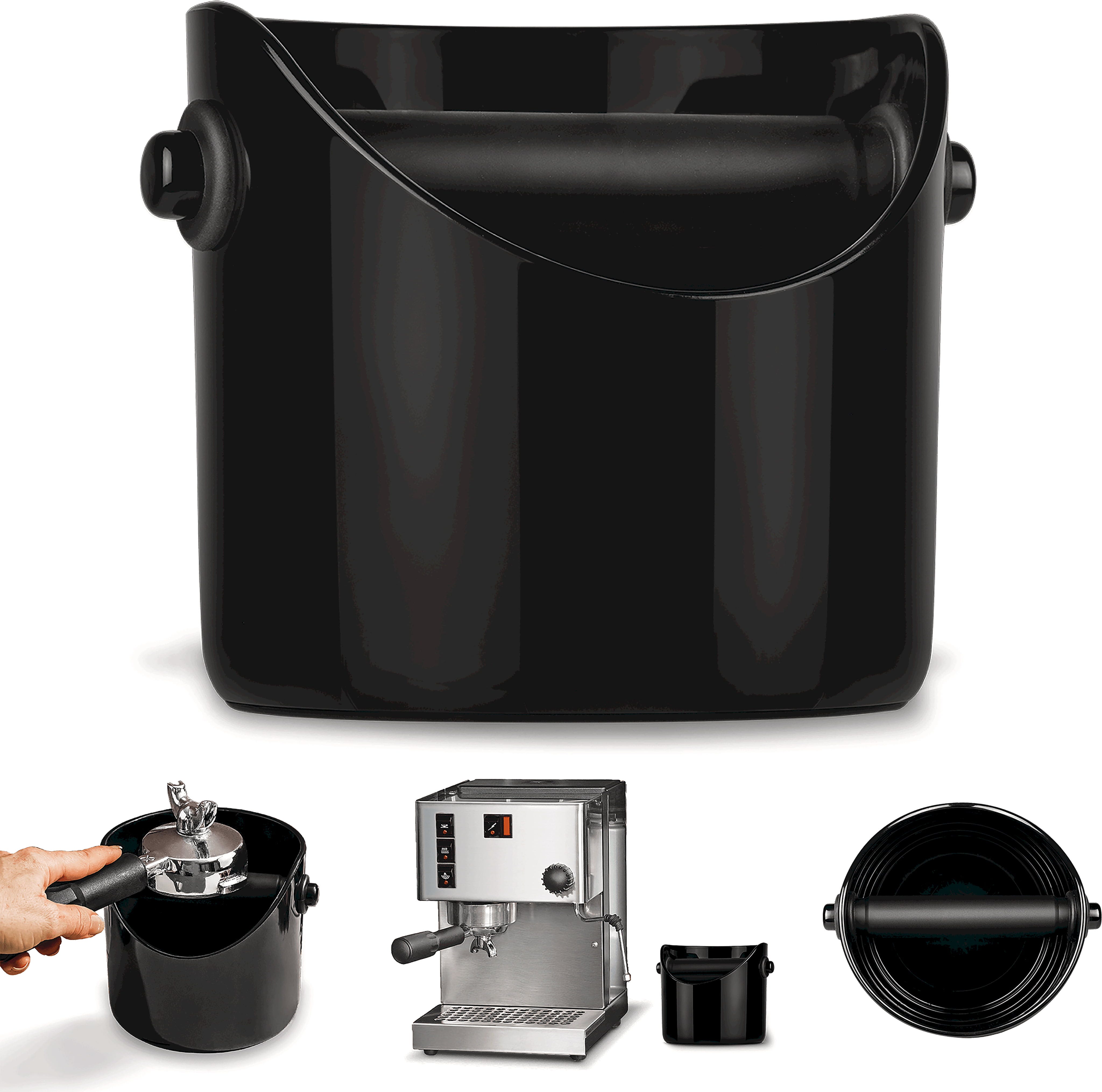 • Knocks out coffee grounds quietly thanks to silicone-coated strike bar