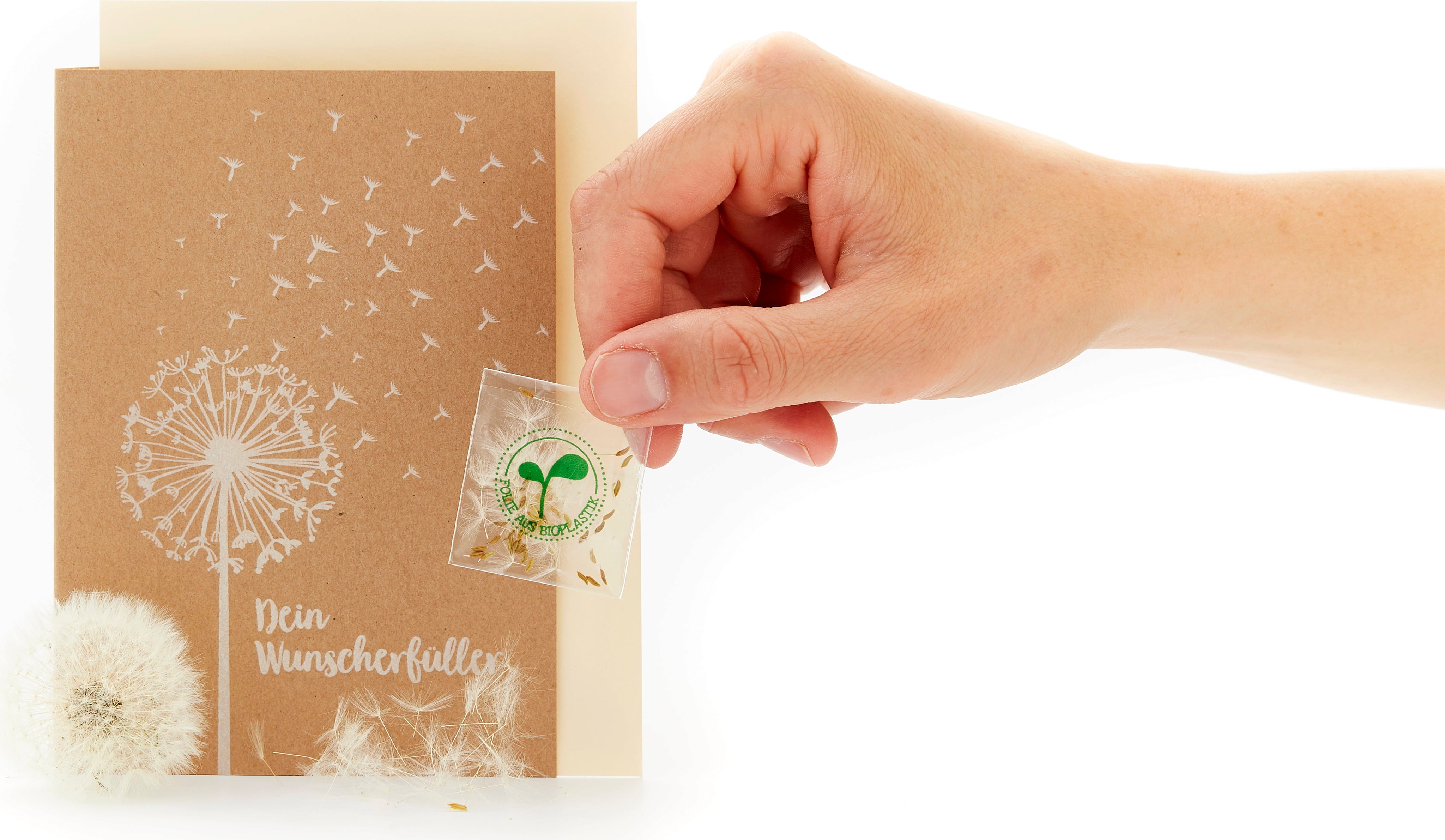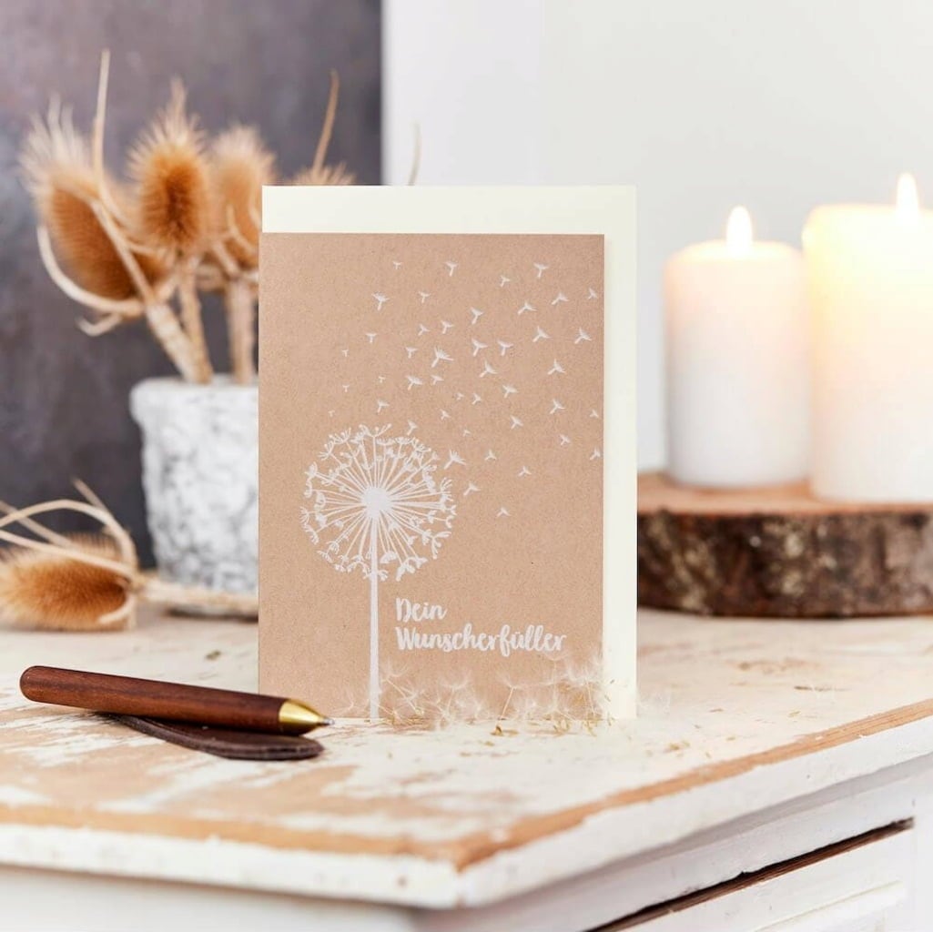 This lovingly designed greeting card contains dandelion seeds and is a gorgeous way to show a loved one that you would like to grant them a heartfelt wish. Deliver that special message in a unique way with this greeting card.
