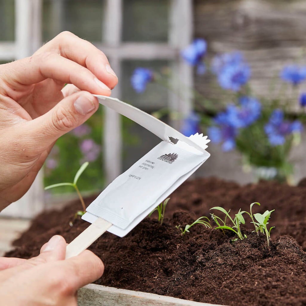 This seed card contains sunflower seeds (Helianthus annuus). Sow in a pot indoors in March and move the seedlings outside after the last frost. From April, the seeds can be sown directly outdoors. Sunshine, nutrient-rich soil, plenty of water and a bit of fertiliser will make these sunflowers thrive and bloom.