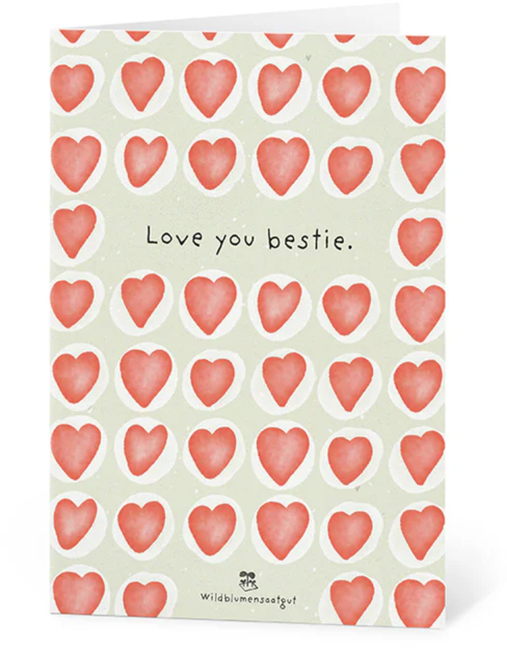 Love you, bestie! Show how much you appreciate your best friend with this card that expresses what is said far too rarely: you are important to me. Perfect for the person who always listens to you, and laughs and empathises with you - a message of gratitude and love. Perfect for birthdays, friendship day or just a little gesture of love.