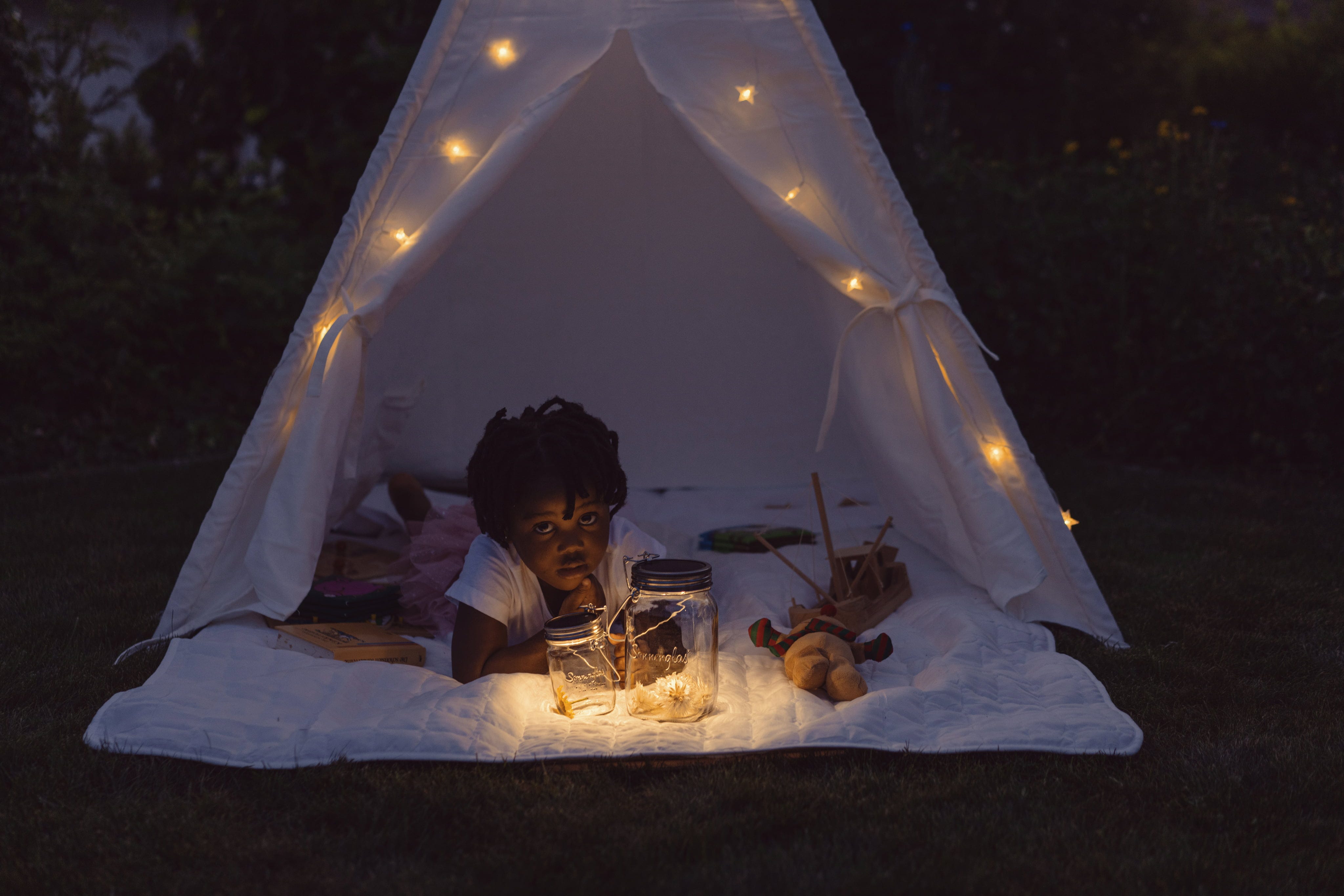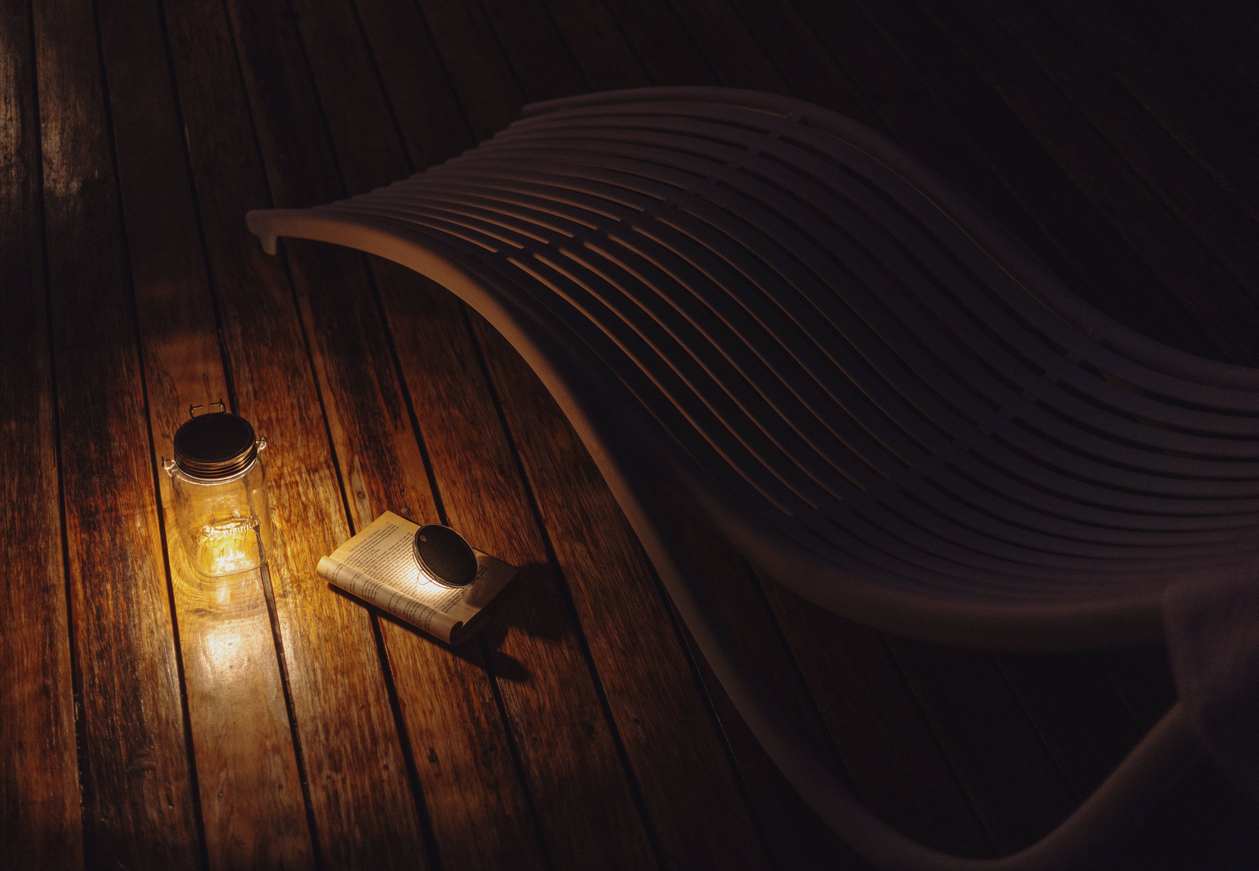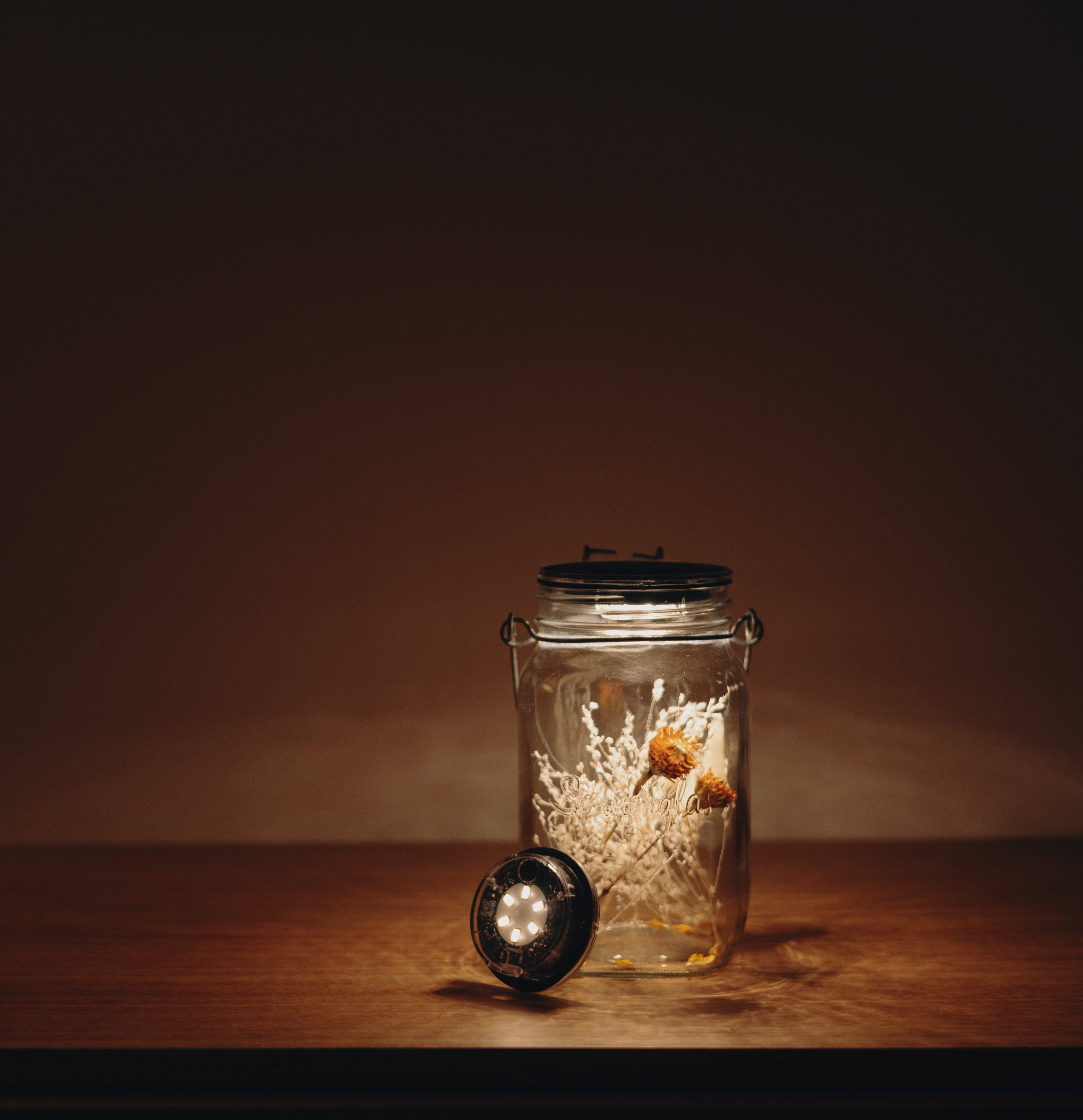 - Fill the glass jar with whatever decorations you like - dried flowers, stones, sand or shells, create your own unique decorations. The integrated LEDs produce a beautiful light that is strong enough to use to read. During the day, the solar panel charges the battery so that at night, all you have to do is flip the switch to enjoy the light.