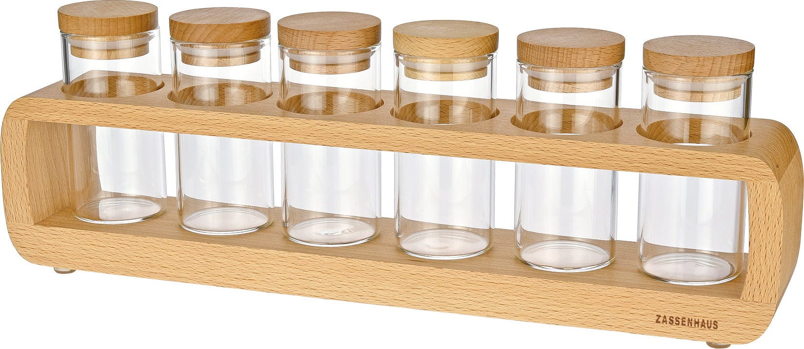 This elegant spice rack by Zassenhaus brings clarity and style to your kitchen. The combination of robust beech wood and modern glass jars makes it not only practical but also a visual highlight. Thanks to the open design, you always have your favourite spices in view - perfect for anyone who loves cooking, decorating and keeping things tidy.